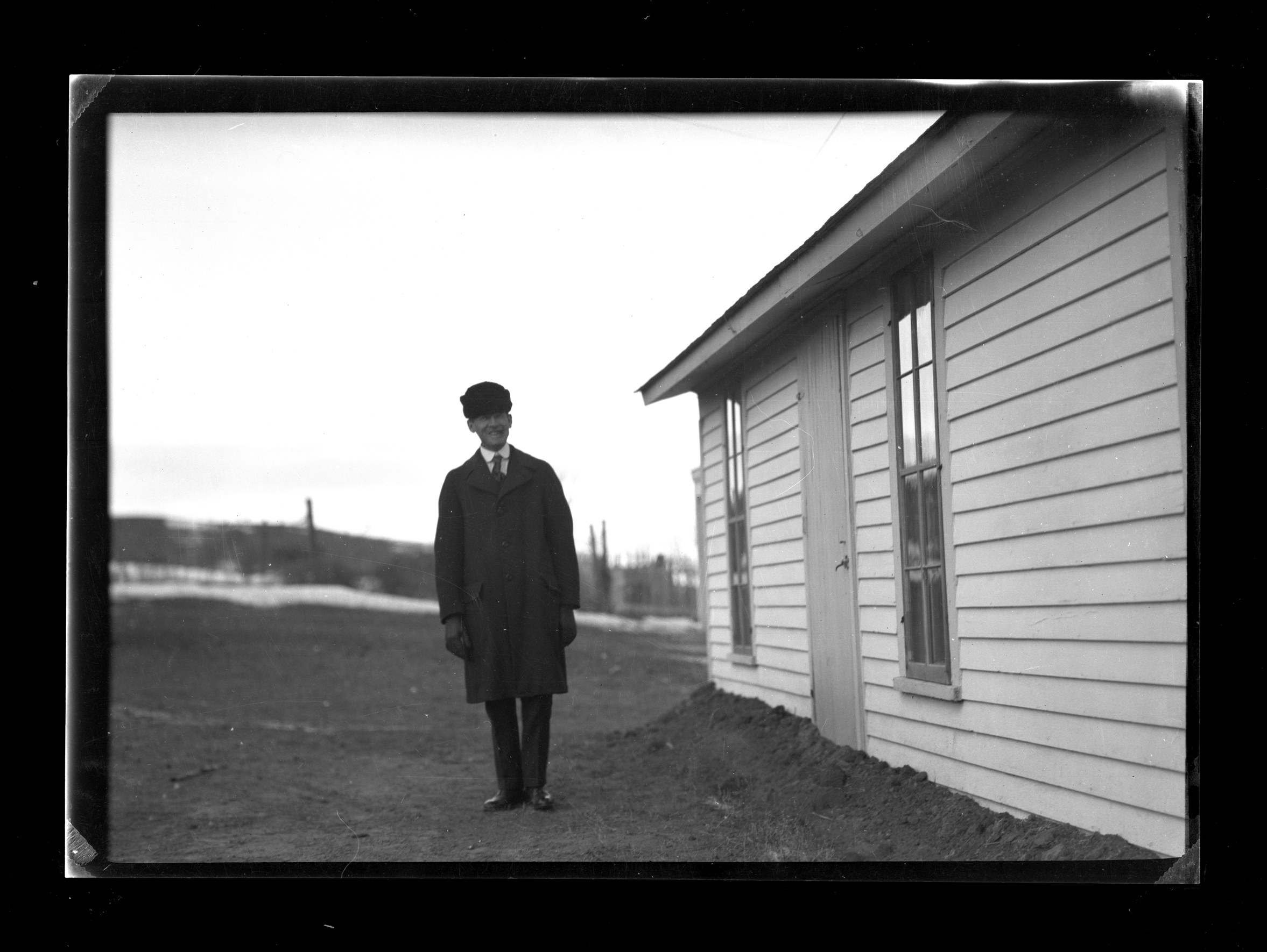 Title: Frank Fiske standing next to apartment