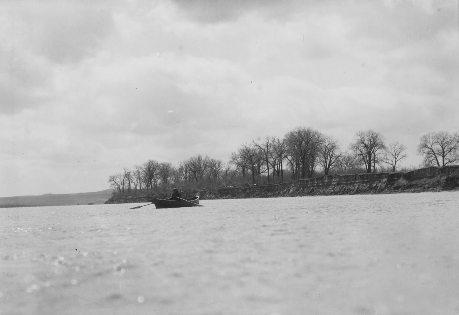 Title: Frank Fiske in a row boat on the Missouri River