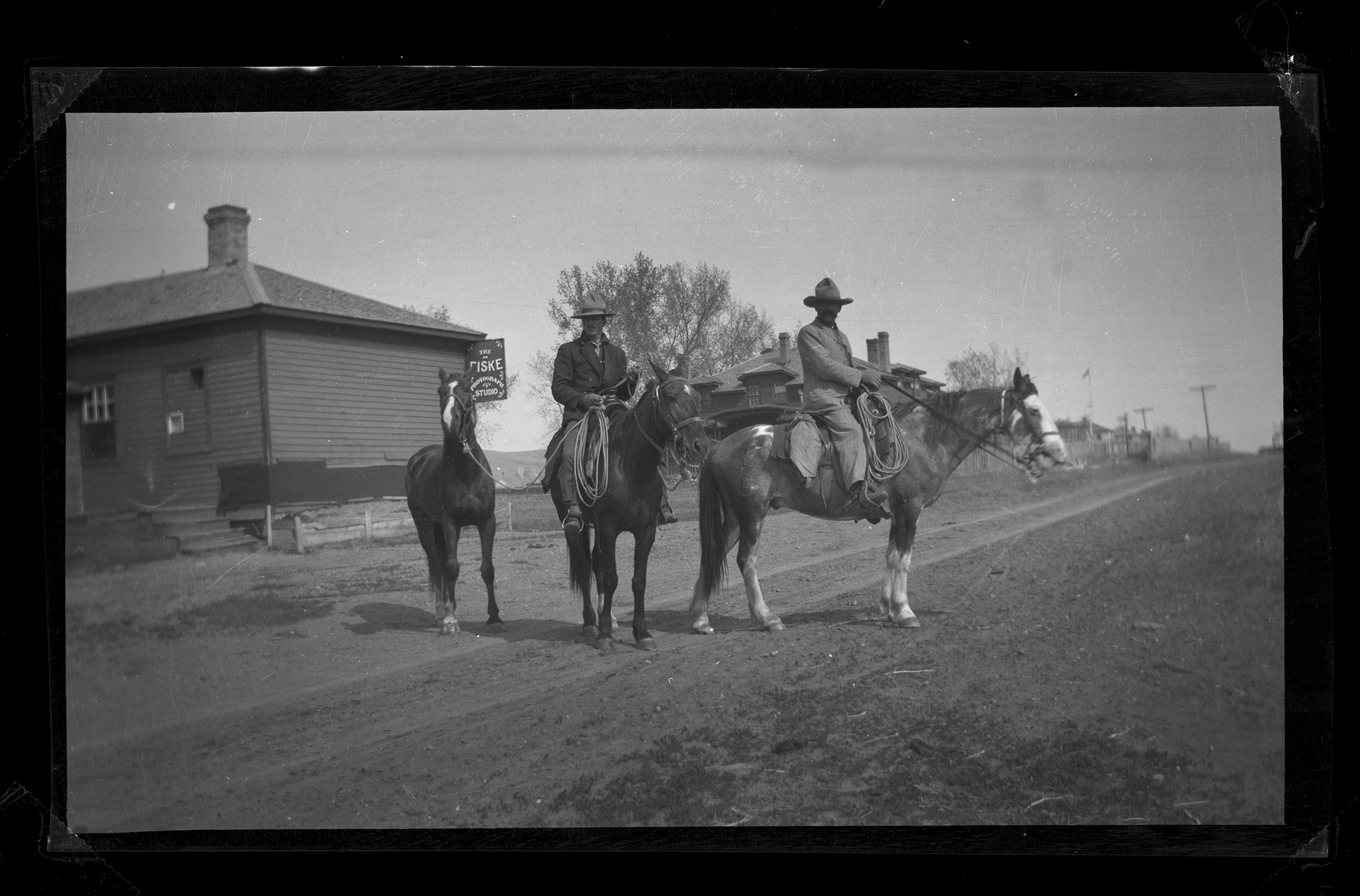Title: Dick Ramsey and Charles McLaughlin on horseback