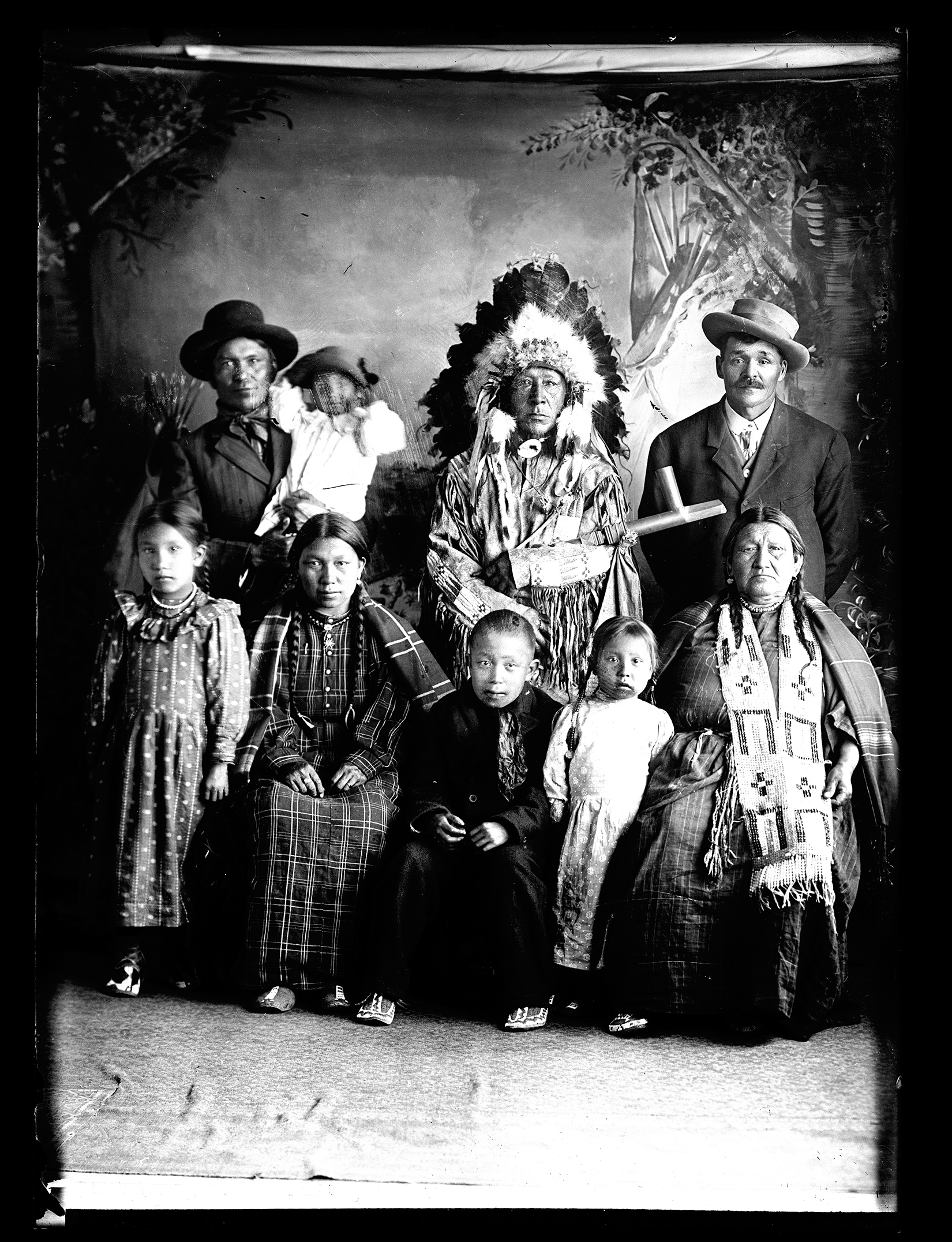 Title: Major and Mrs. James McLaughlin Sr. standing on porch with their children and grandchildren, McLaughlin (S.D.)