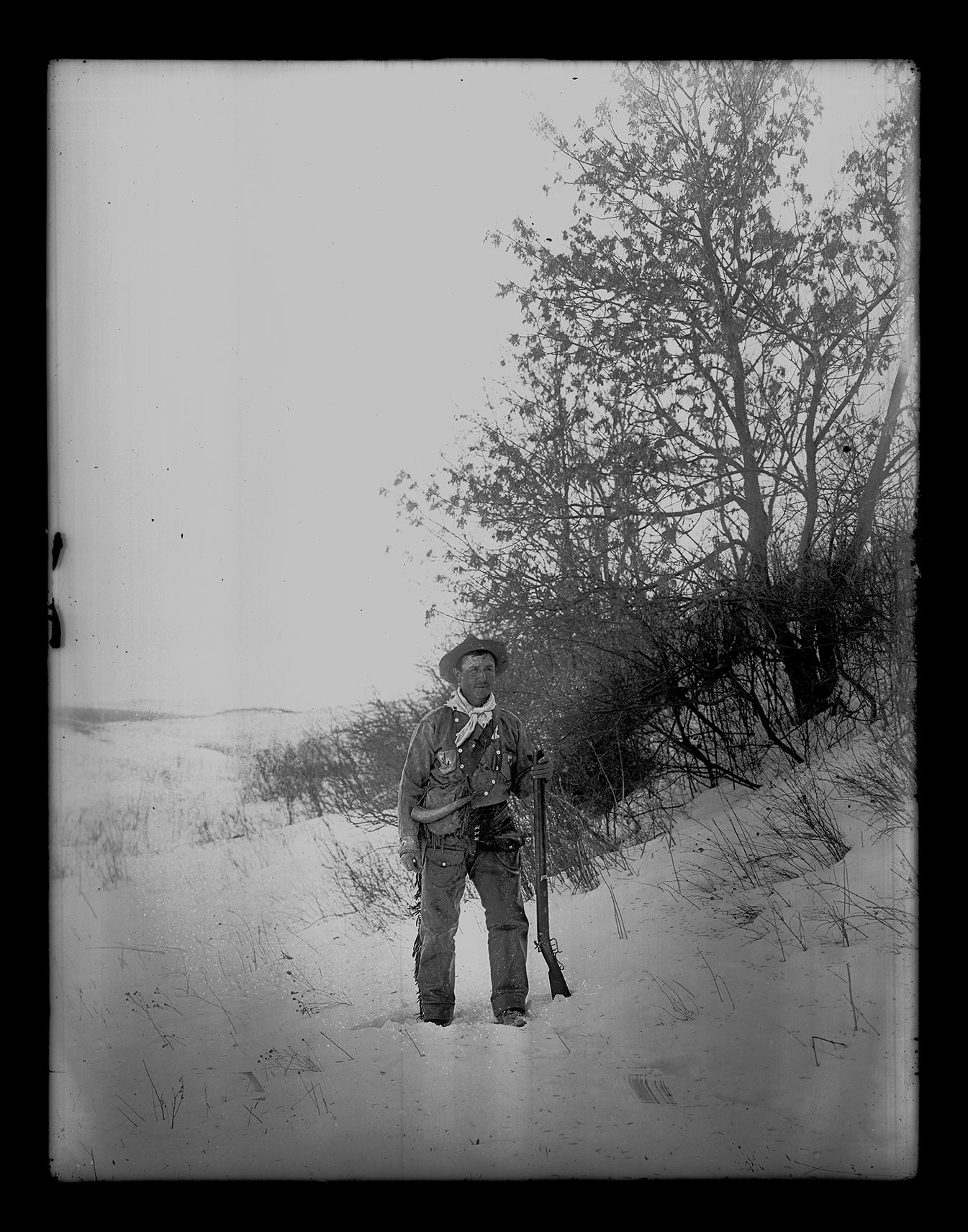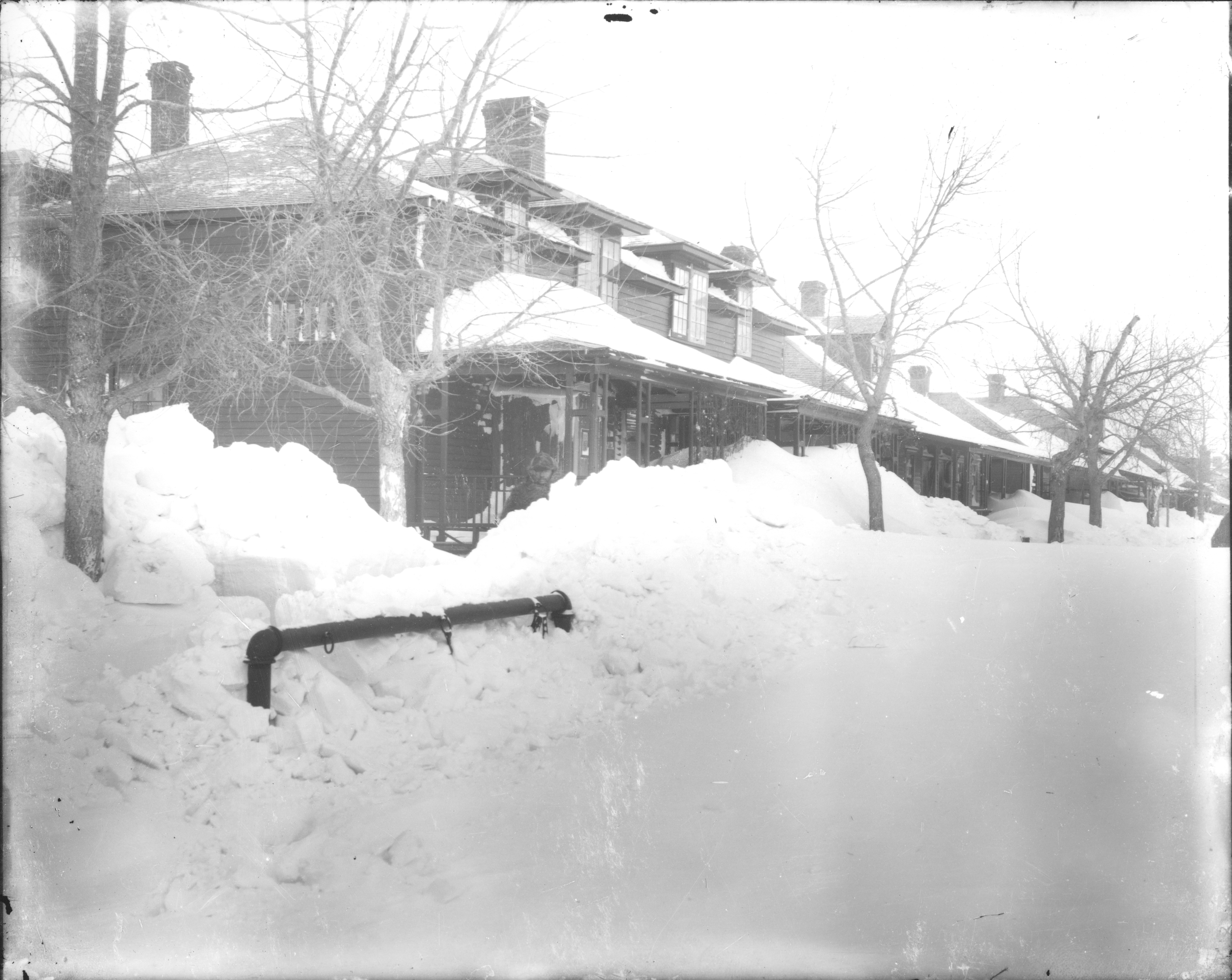 Title: Snow scene on Officers' Row, Fort Yates military post (N.D.)