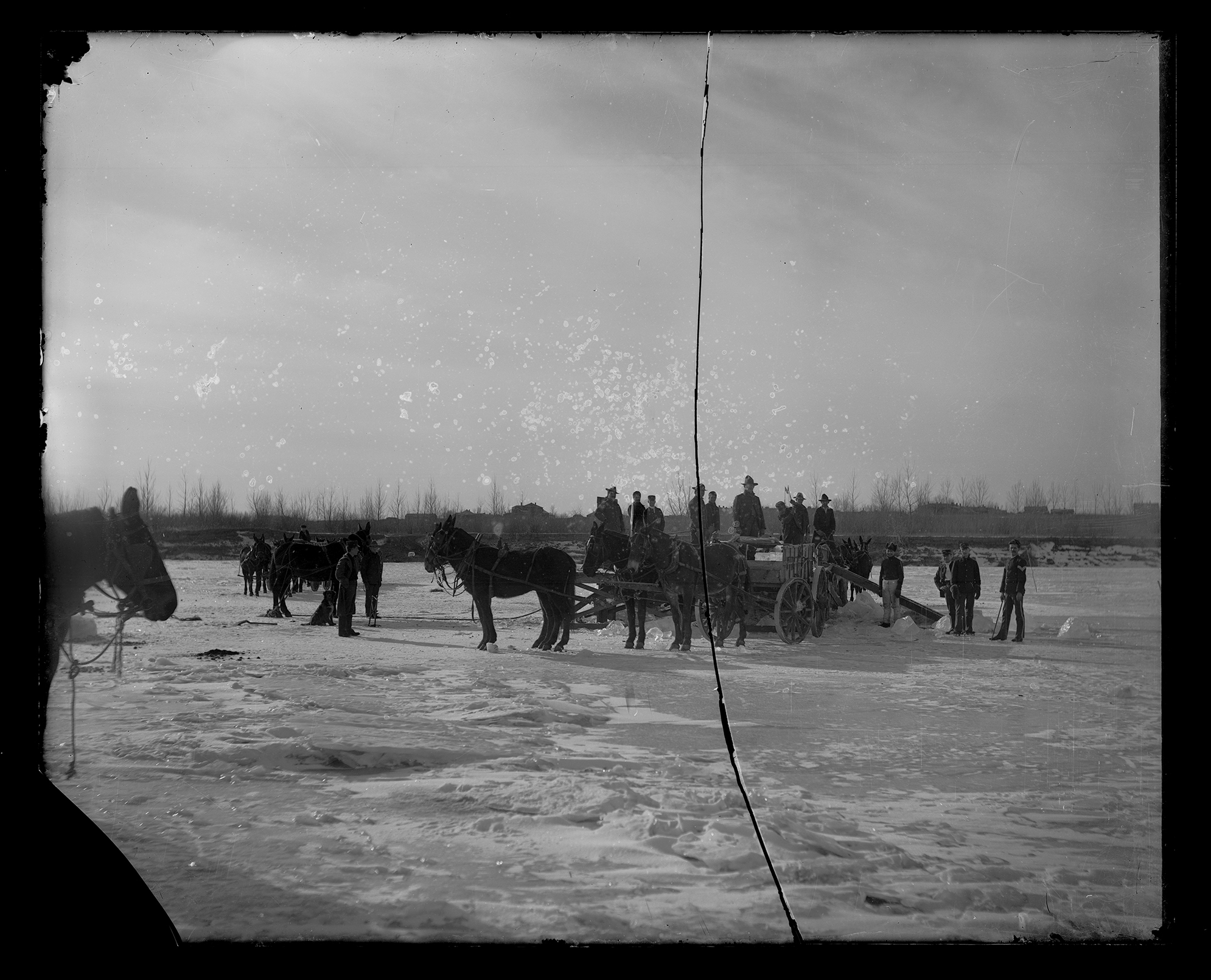 Title: Putting up ice from Missouri River at Fort Yates (N.D.)
