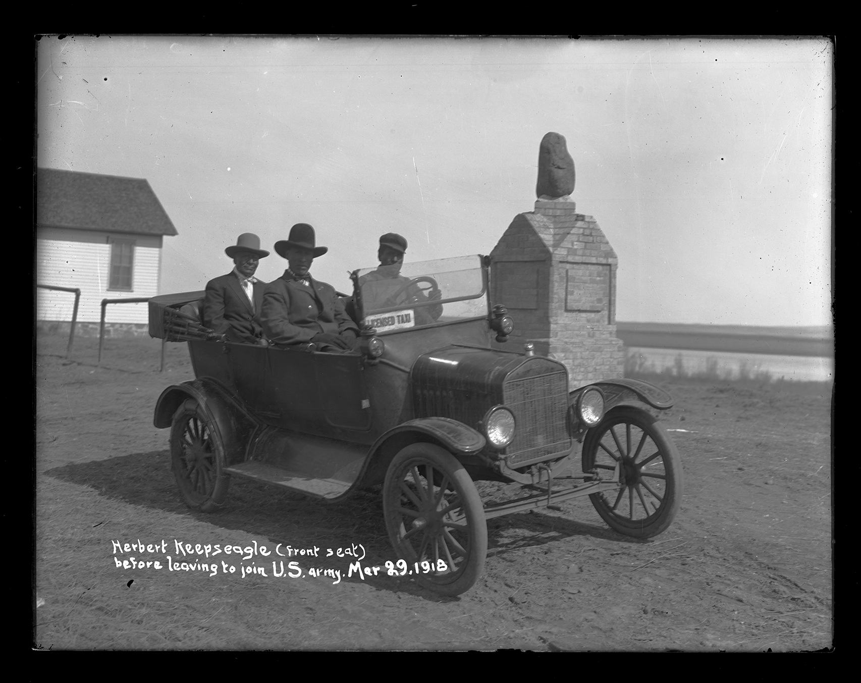Title: "Herbert Keeps Eagle (front seat) before leaving to join U.S. Army March 29,1918"