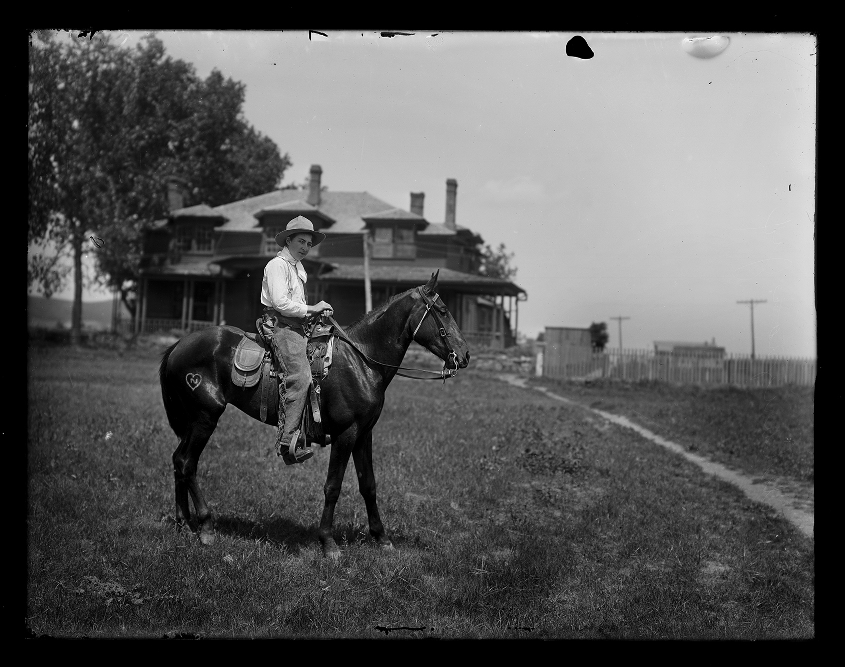 Title: John Maglorie “Jack” Carignan Jr. seated on horse