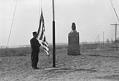 Title: John Gates, Little Soldier, C. E. Faris, Frank B. Zahn and Swift Hawk standing behind Sitting Bull's grave, Fort Yates (N.D.)