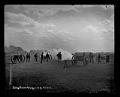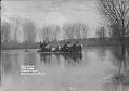 Title: School boys and horse drawn wagons fording Missouri River in deep water