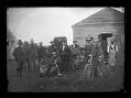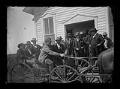 Title: Men and group in a wagon outside the Emmons County Courthouse, Williamsport (N.D.)