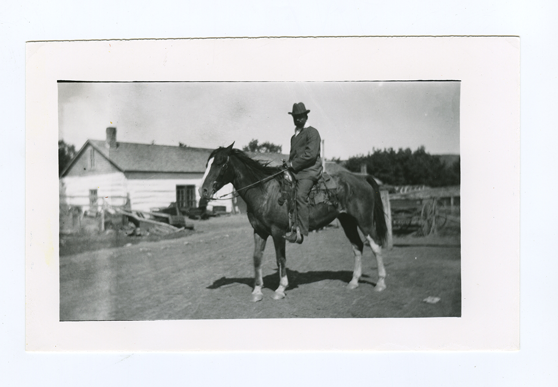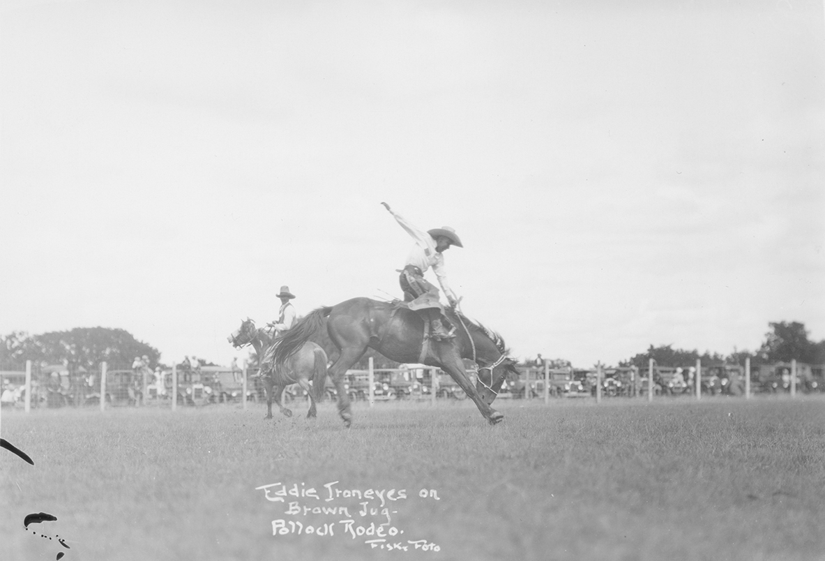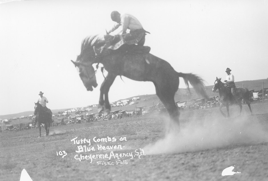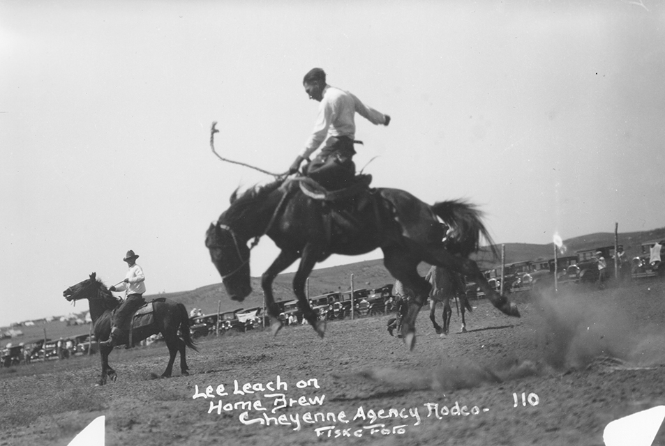 Title: "Lee Leach on Home Brew, Cheyenne Agency rodeo"