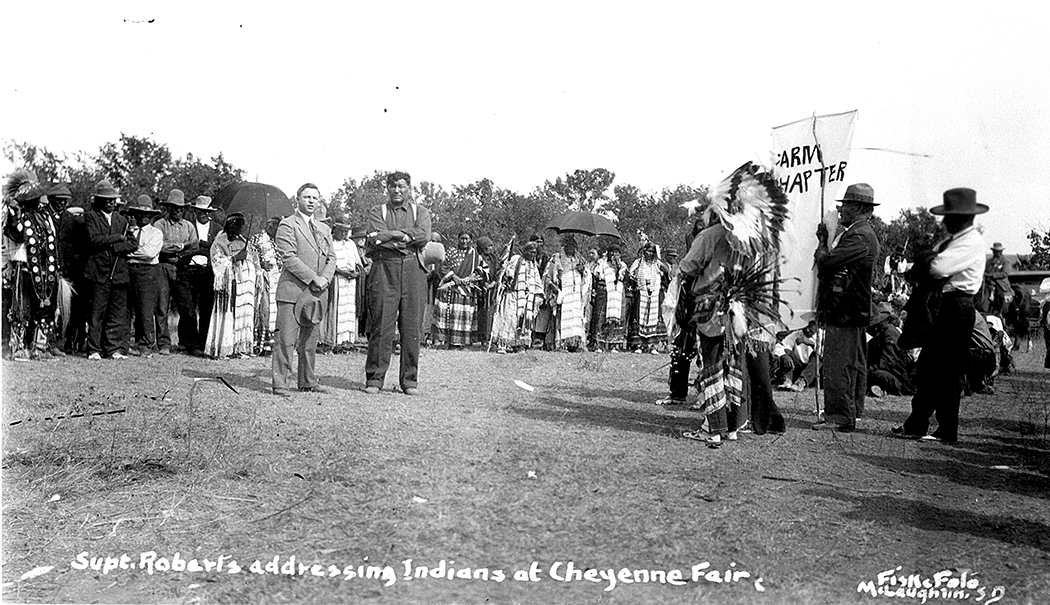 Title: Superintendent Roberts addressing Indians at Cheyenne Fair, Cheyenne Agency (S.D.)