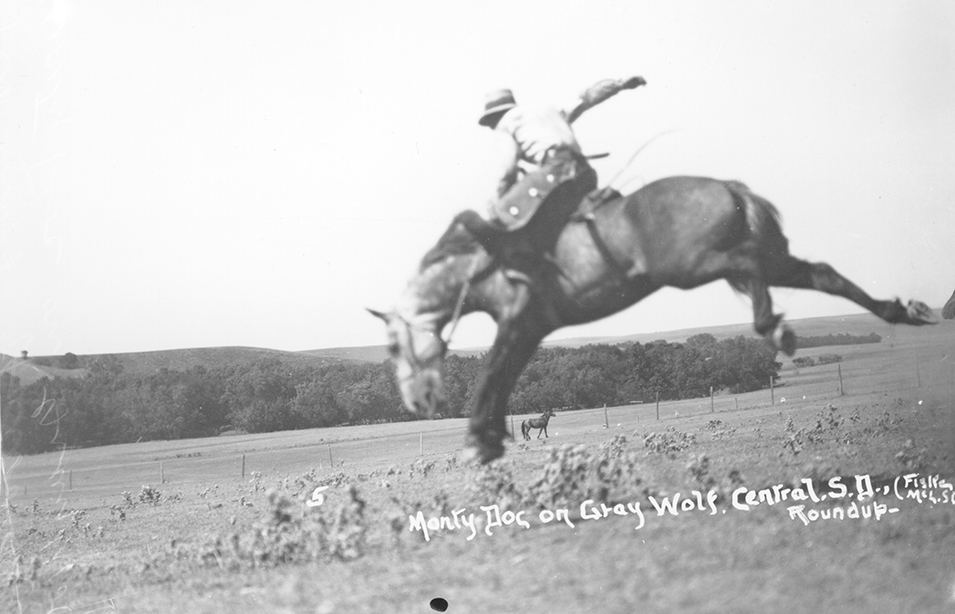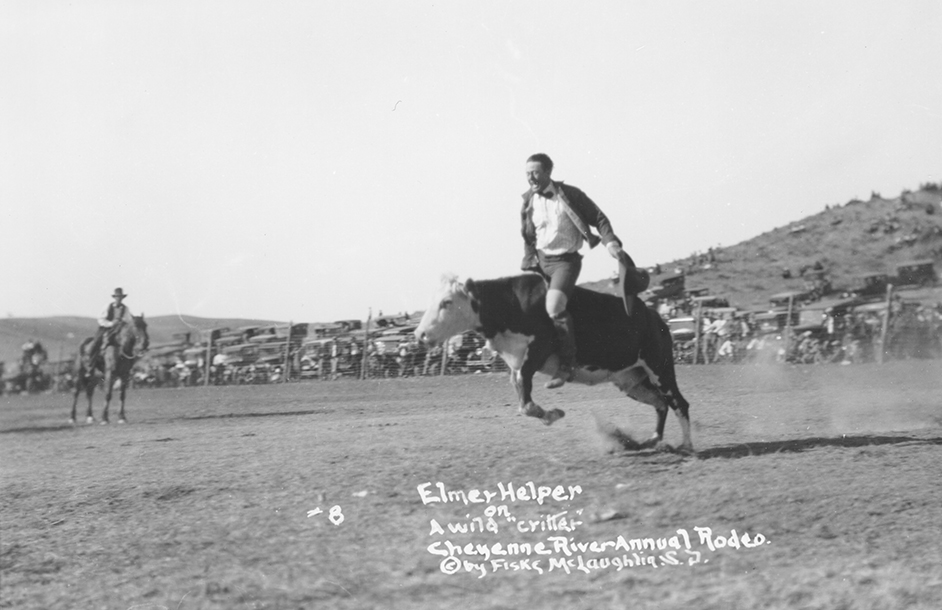 Title: Elmer Helper on a wild "critter," Cheyenne River rodeo