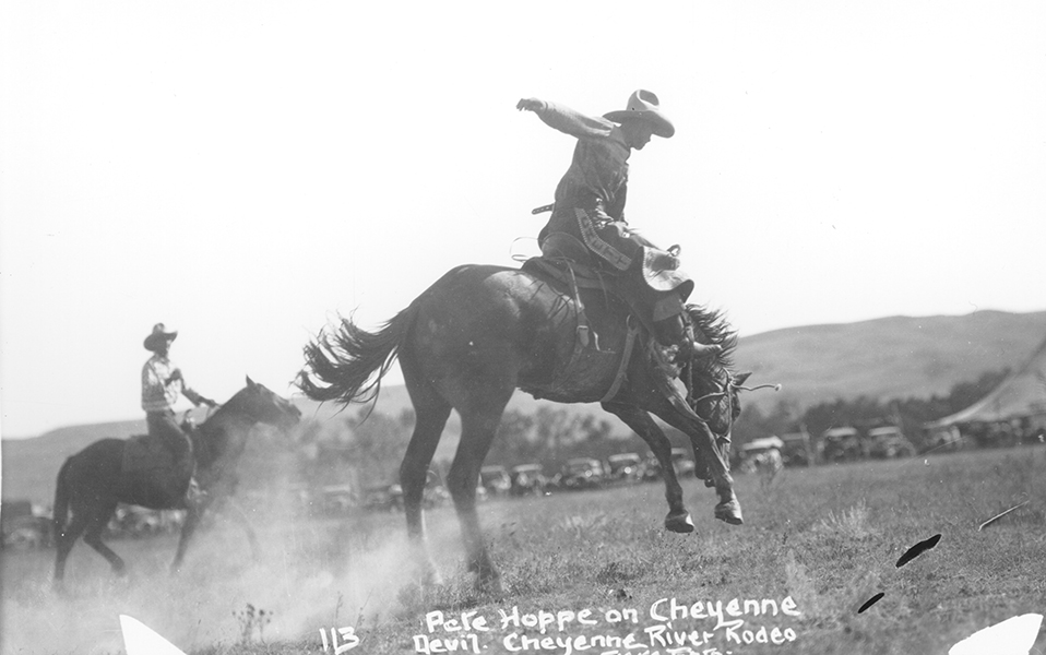 Title: Pete Hoppe on Cheyenne Devil, Cheyenne River rodeo