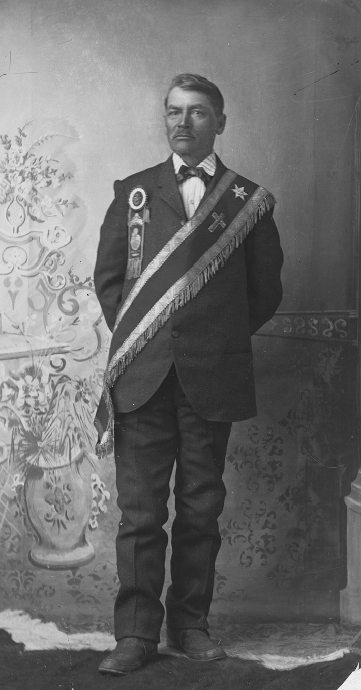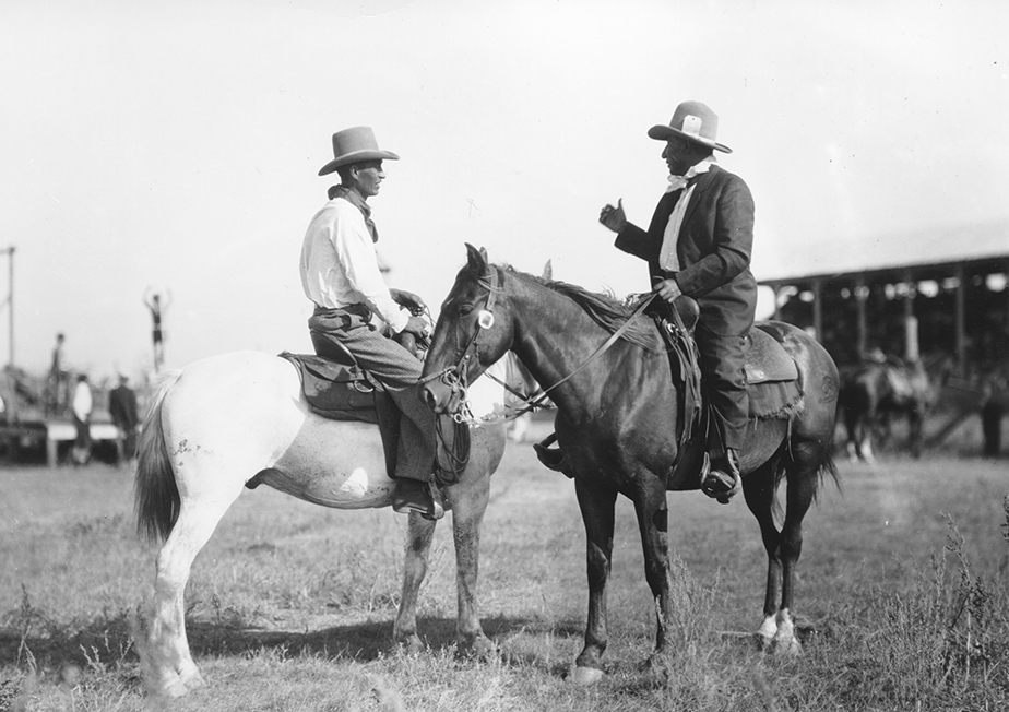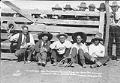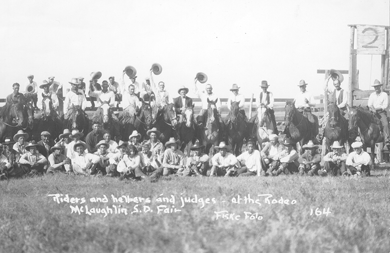 Title: "Riders and helpers and judges at the Rodeo McLaughlin S.D. Fair"