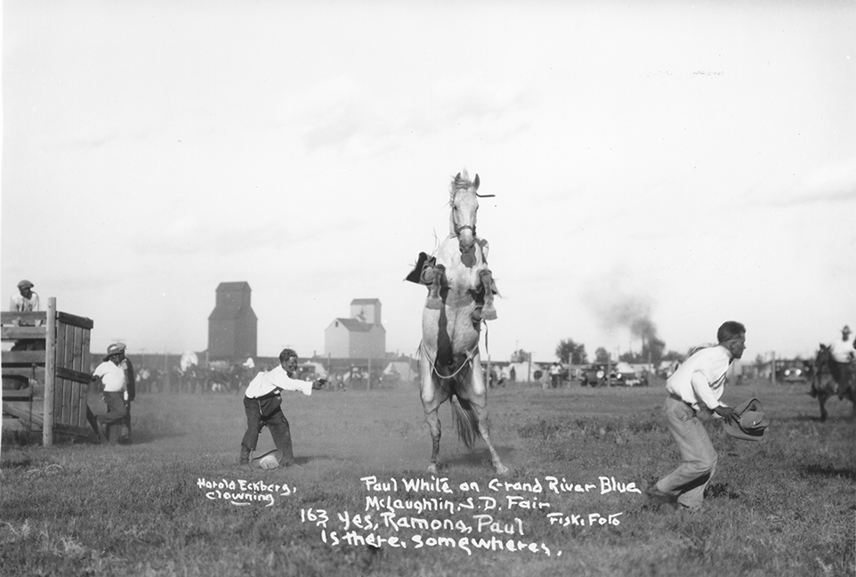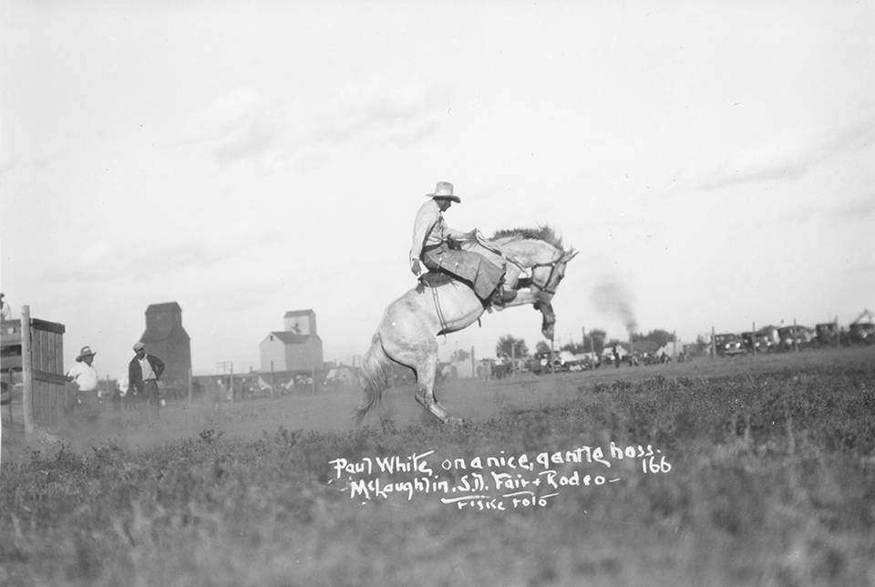 Title: "Paul White on a nice, gentle hoss, McLaughlin S.D. Fair and Rodeo"