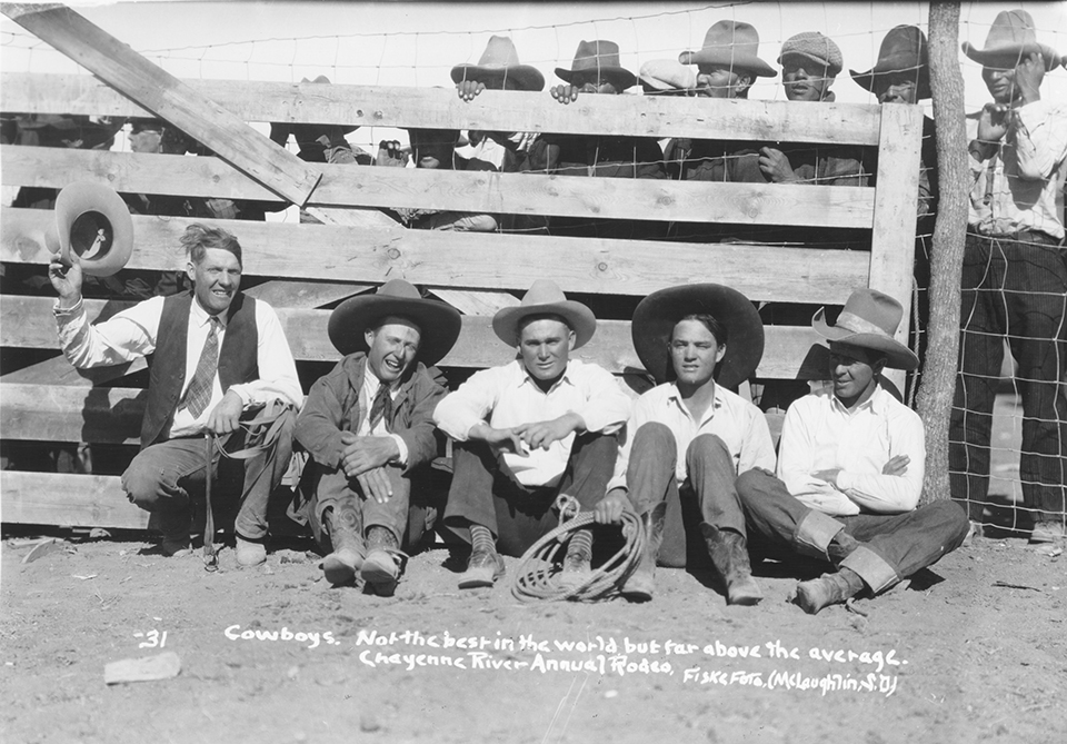 Title: "Cowboys. Not the best in the world but far above the average. Cheyenne River annual rodeo"