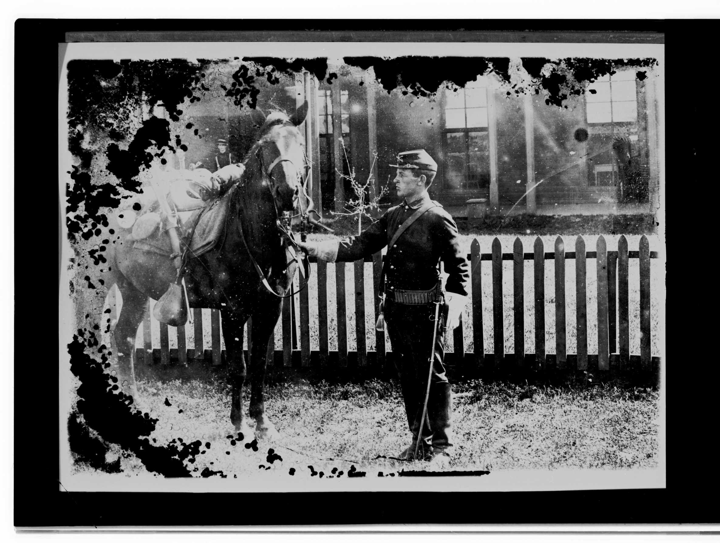 Title: Cavalryman holding horse, Fort Yates (D.T.)