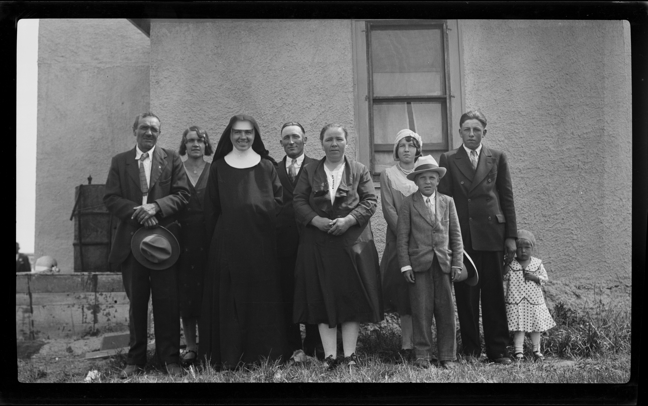Title: Sister Dorothea Daniel Laintz with her family after taking vows