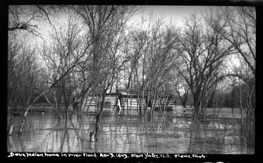 Title: "Sioux Indian home in river flood" Fort Yates (N.D.)