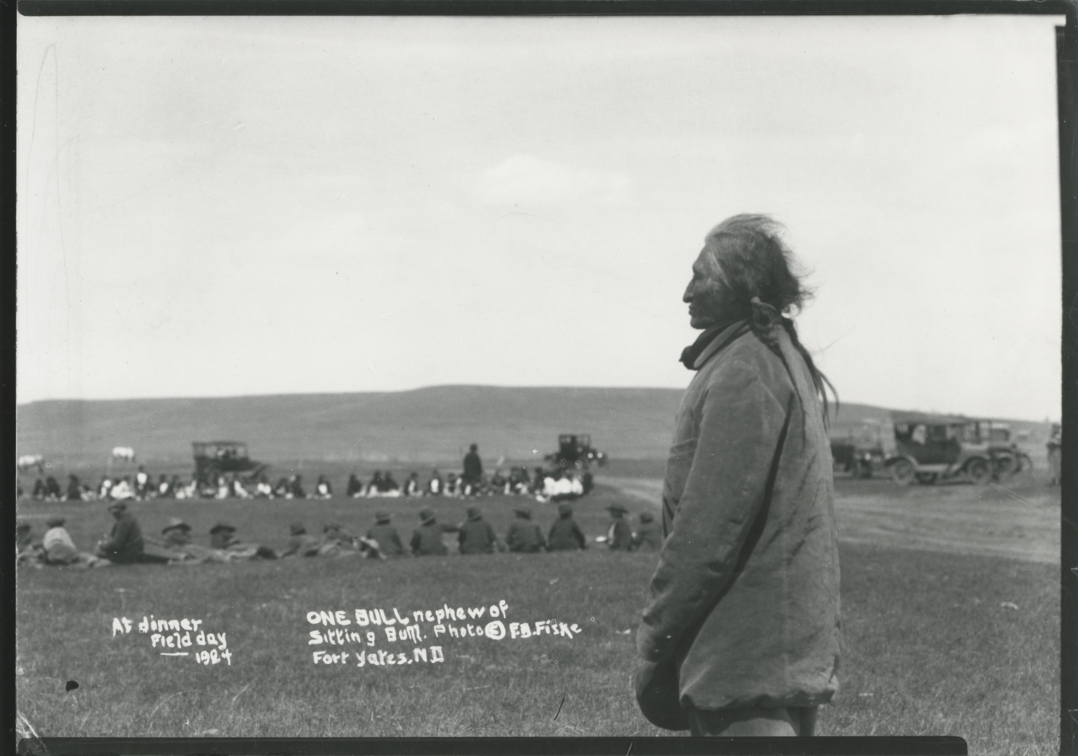 Title: "One Bull, nephew of Sitting Bull, at dinner, field day, Fort Yates, N.D."