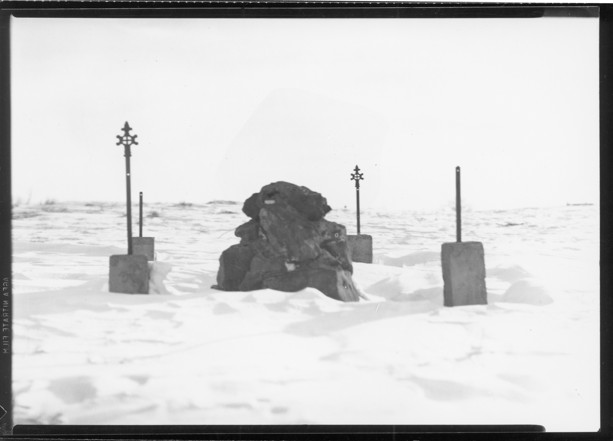 Title: Sitting Bull's grave in snow, Fort Yates (N.D.)