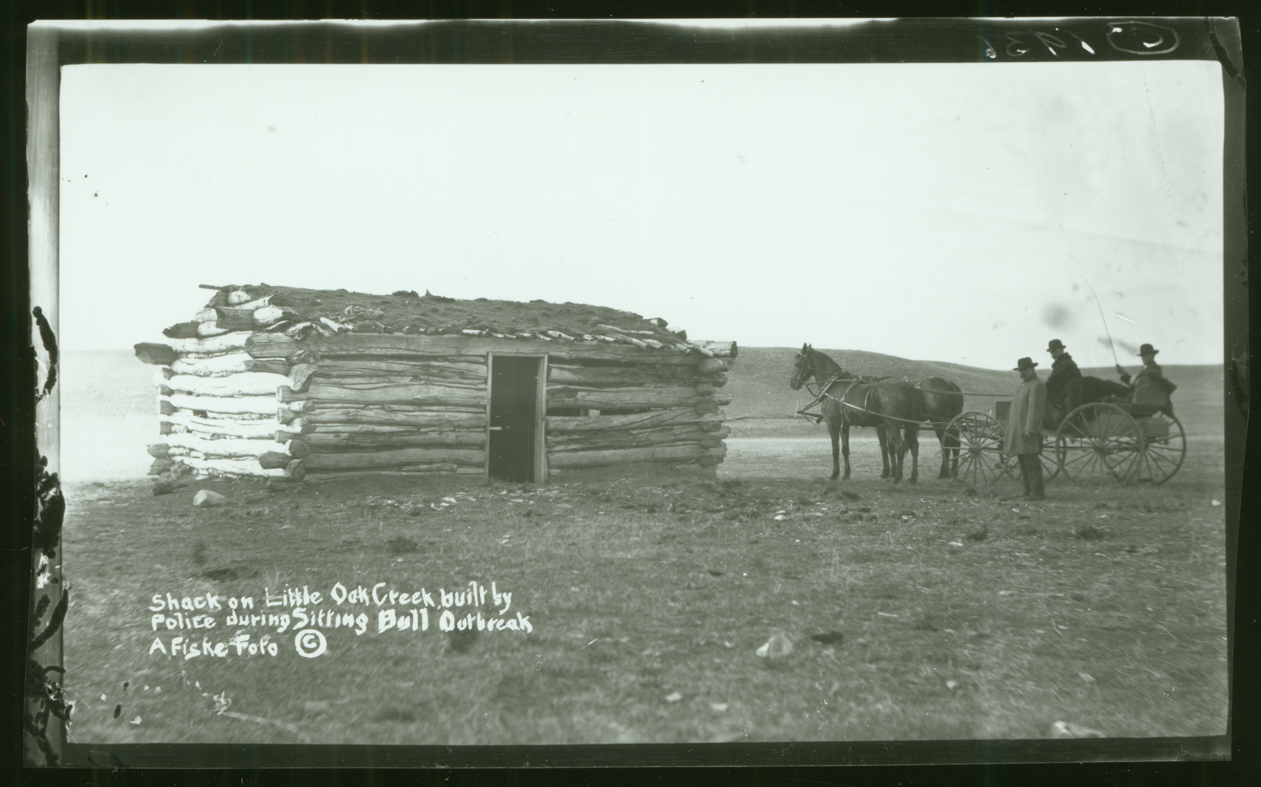 Title: Shack on Little Oak Creek built by police during Sitting Bull outbreak