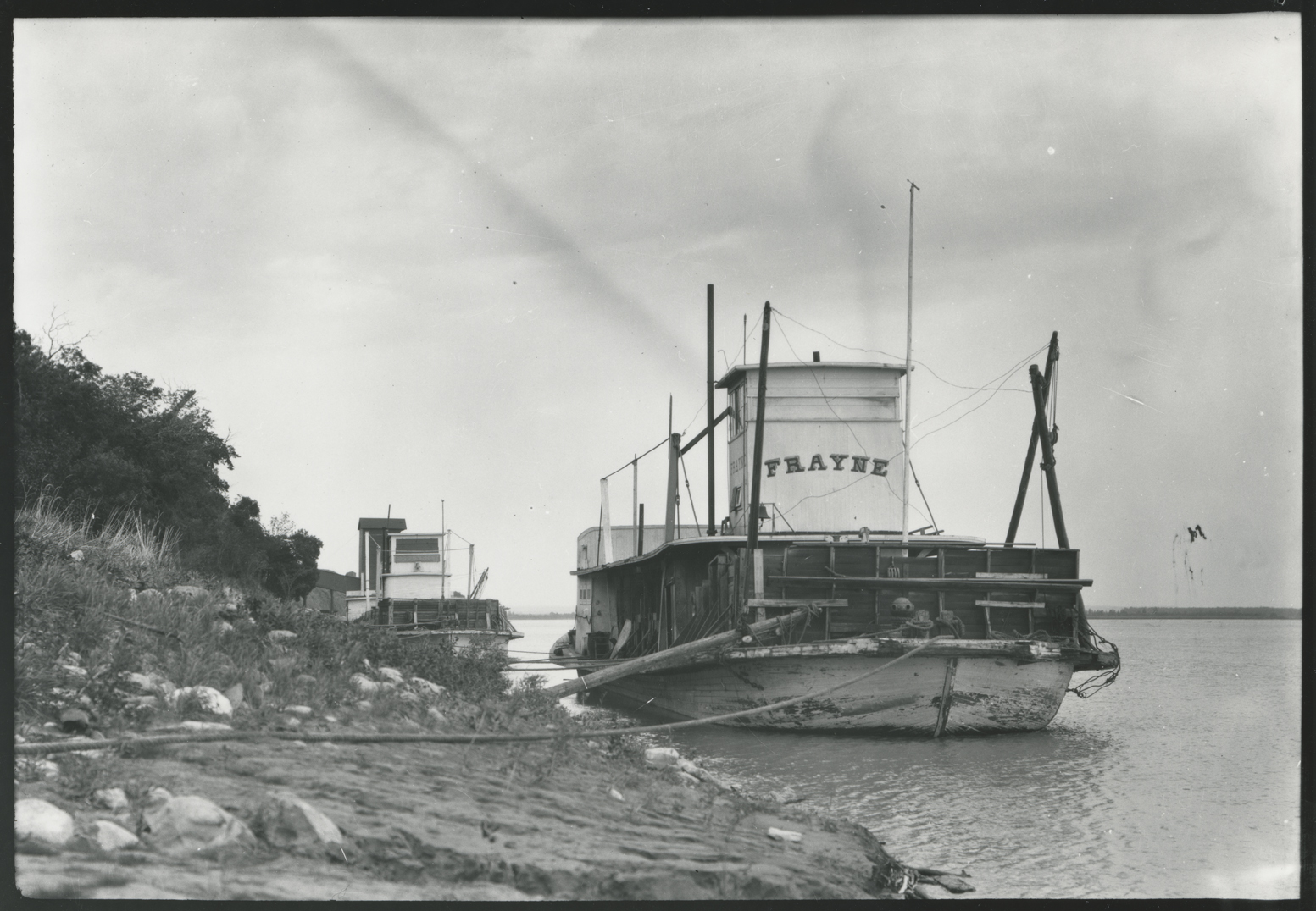 Title: Motor vessels Frayne and Expansion tied up at river's edge