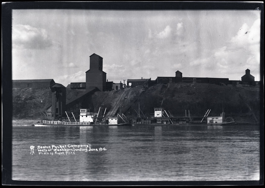 Title: Expansion and Frayne, Benton Packet Co. boats at the landing, Washburn (N.D.)