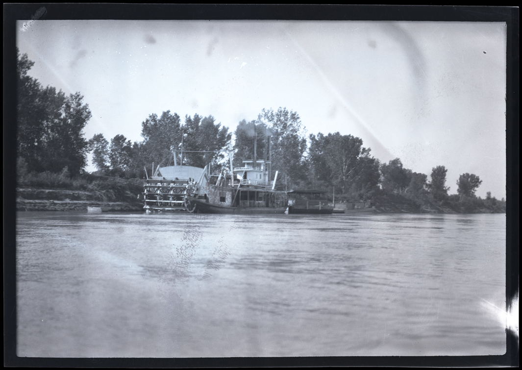 Title: Steamer Scarab docked along Missouri River