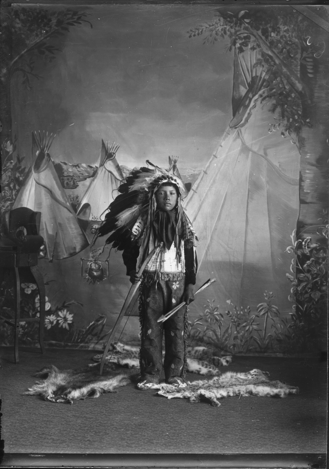 Title: Mandan Boy with bow arrow