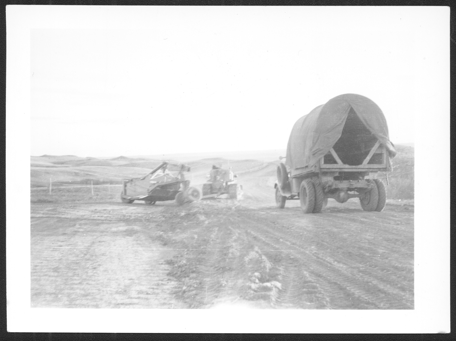 Title: Road building with a truck and tractor