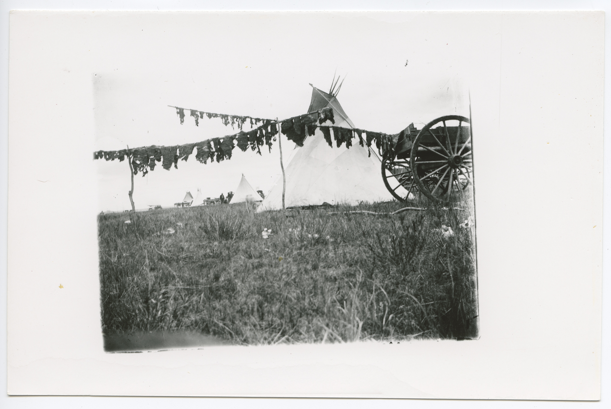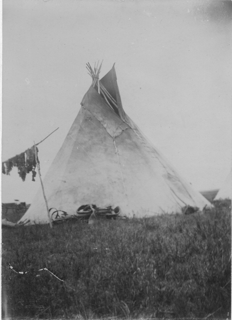 Title: Tipi with meat drying on rack