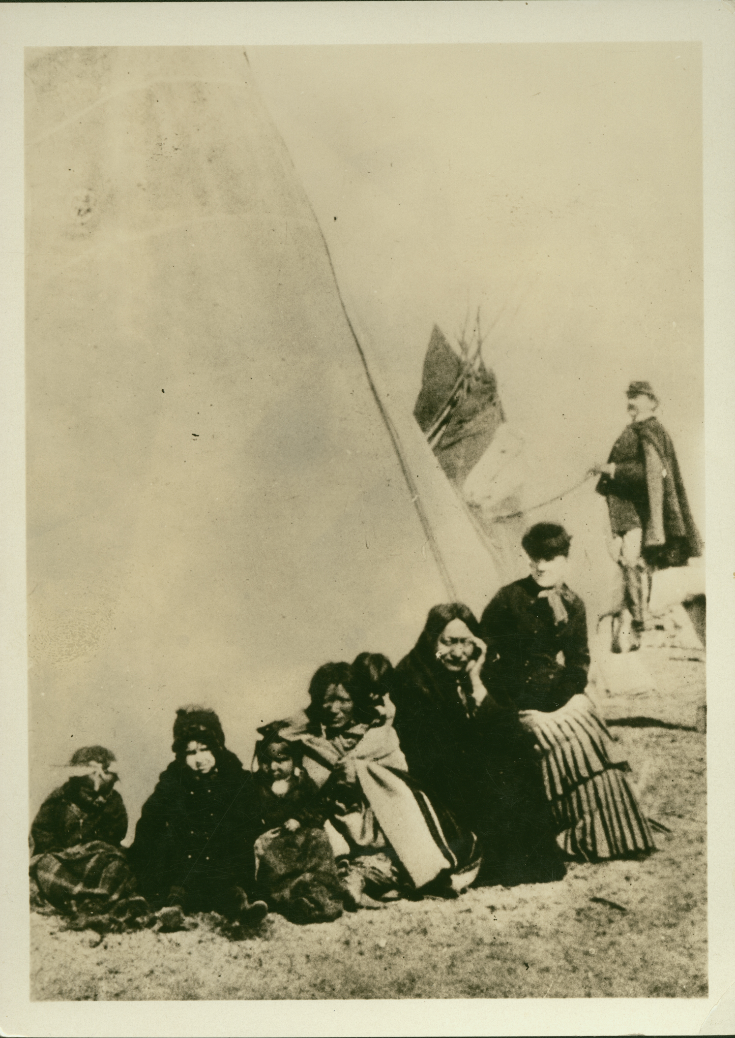 Title: Sitting Bull and family outside their tipi while he was a prisoner of war at Fort Randall