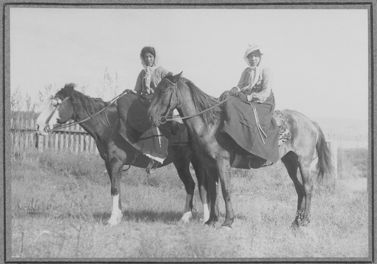 Title: Mabel Chapman and another girl on horseback