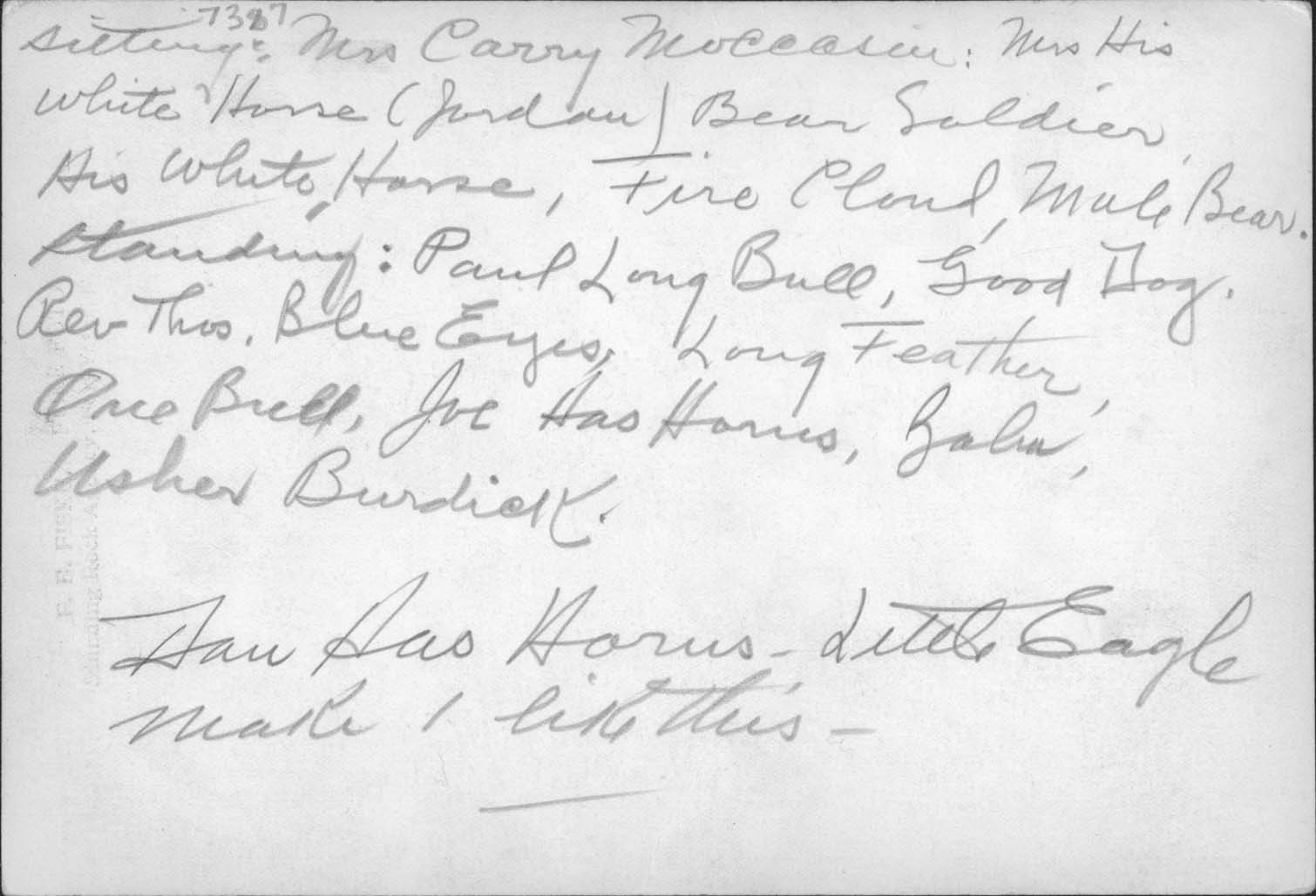 Title: Frank Zahn, Swift Hawk, C. E. Faris, Little Soldier, John Gates