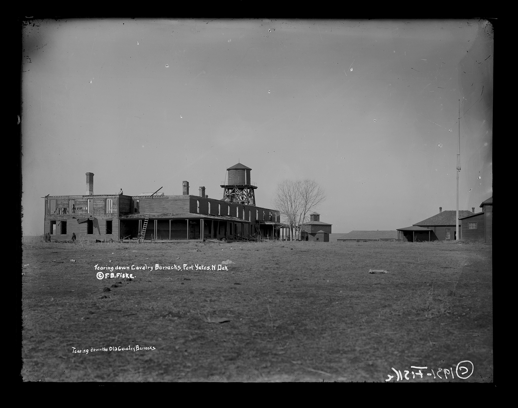Title: Tearing down cavalry barracks on military post at Fort Yates (N.D.)