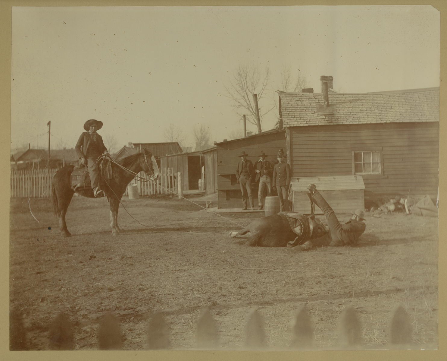 Title: Cowboys outside Fiske Studio, Fort Yates (N.D.)