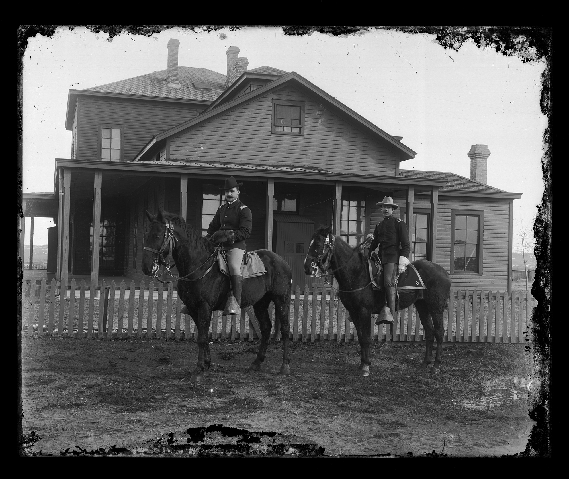Title: Two cavalry men on horses, Fort Yates (N.D.)
