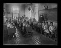 Title: Boarding school students at desks, Sister Odelia at blackboard, Fort Yates (N.D.)