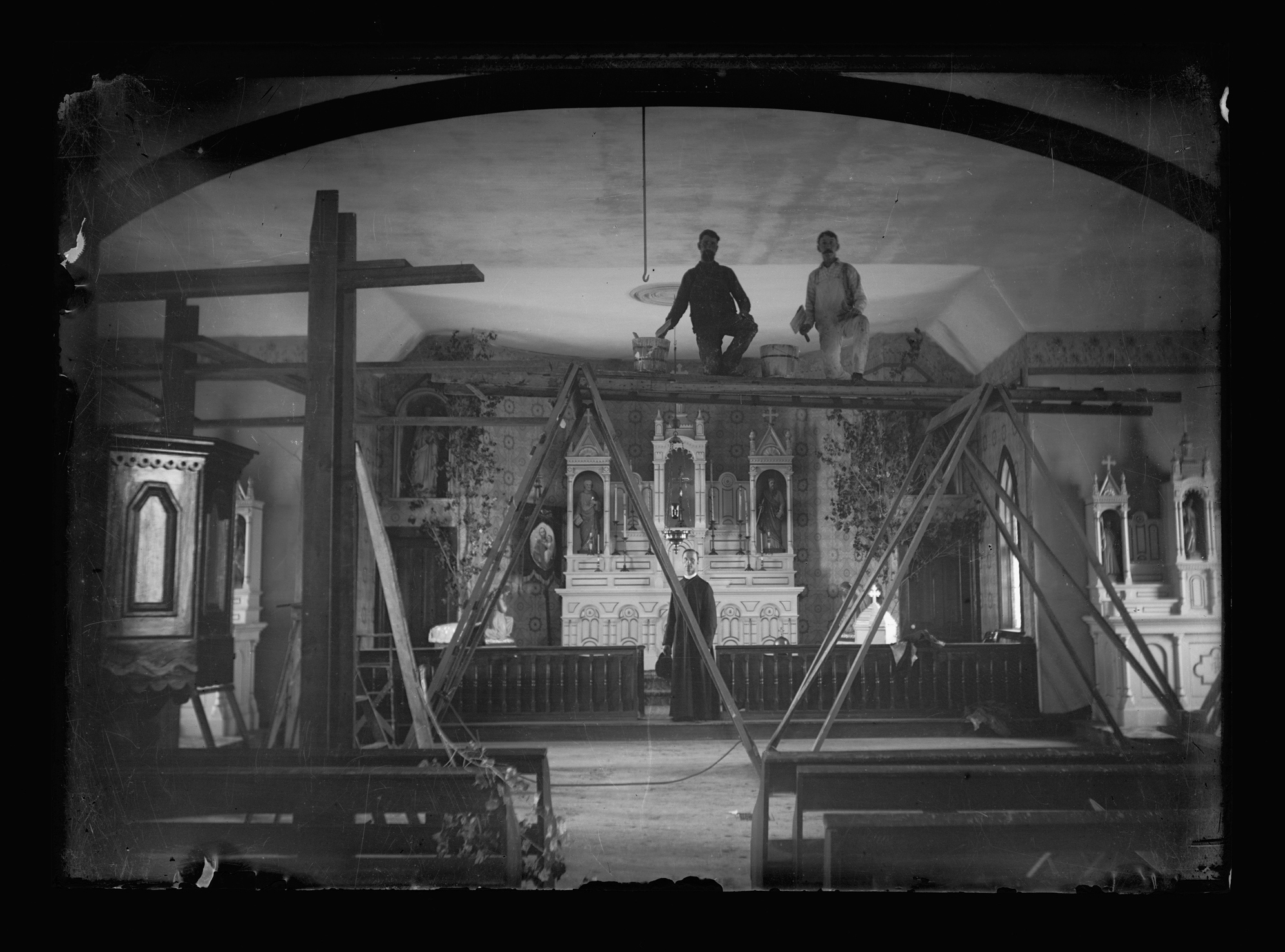 Title: Painting the interior of St. Peter's Catholic Church, Fort Yates (N.D.)