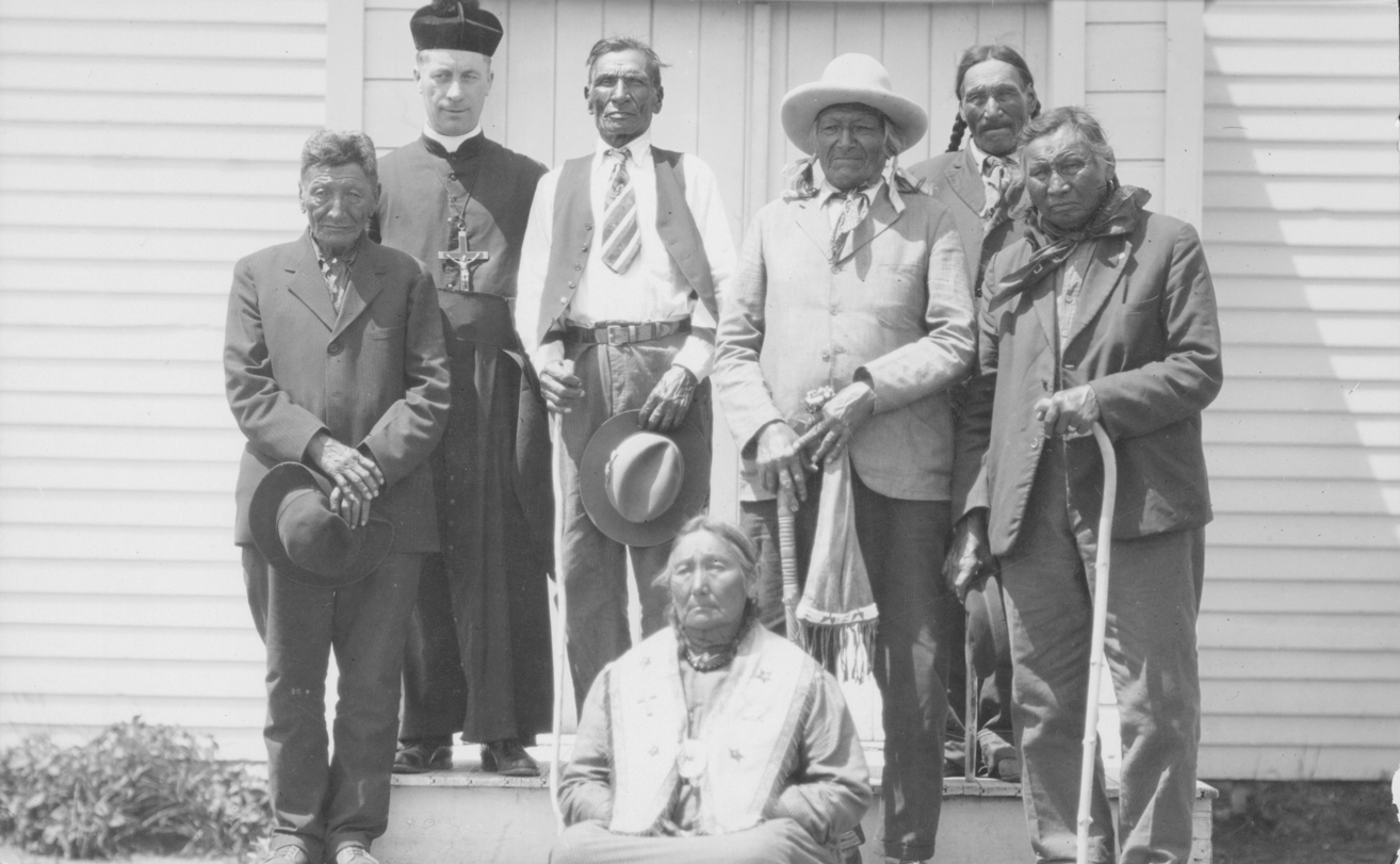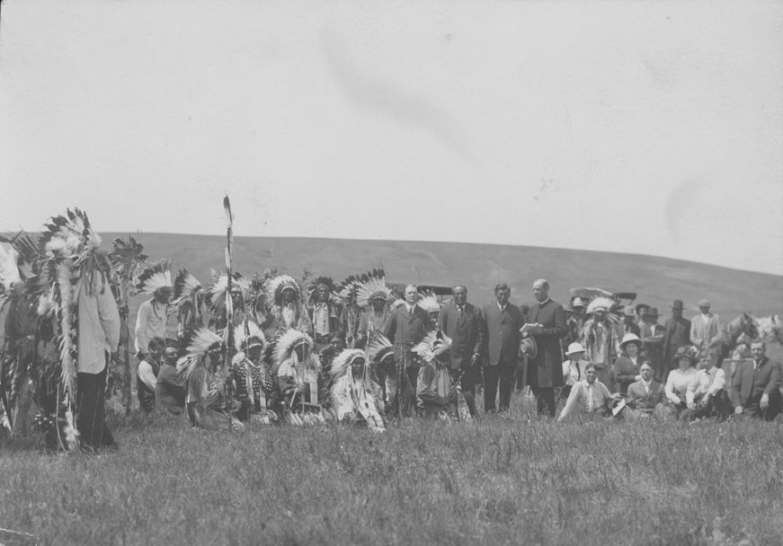Title: Indians ready for dance during A. B. Welch's adoption ceremony Standing Rock Reservation Fort Yates (N.D.)
