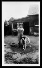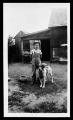 Title: Boy and dog in yard