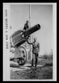 Title: Gene Balzer with gun in front of Memorial Building ND State Capital Grounds Bismarck ND