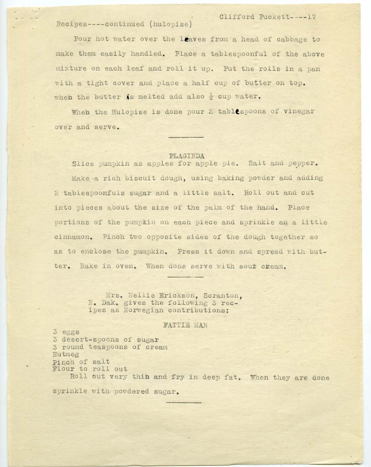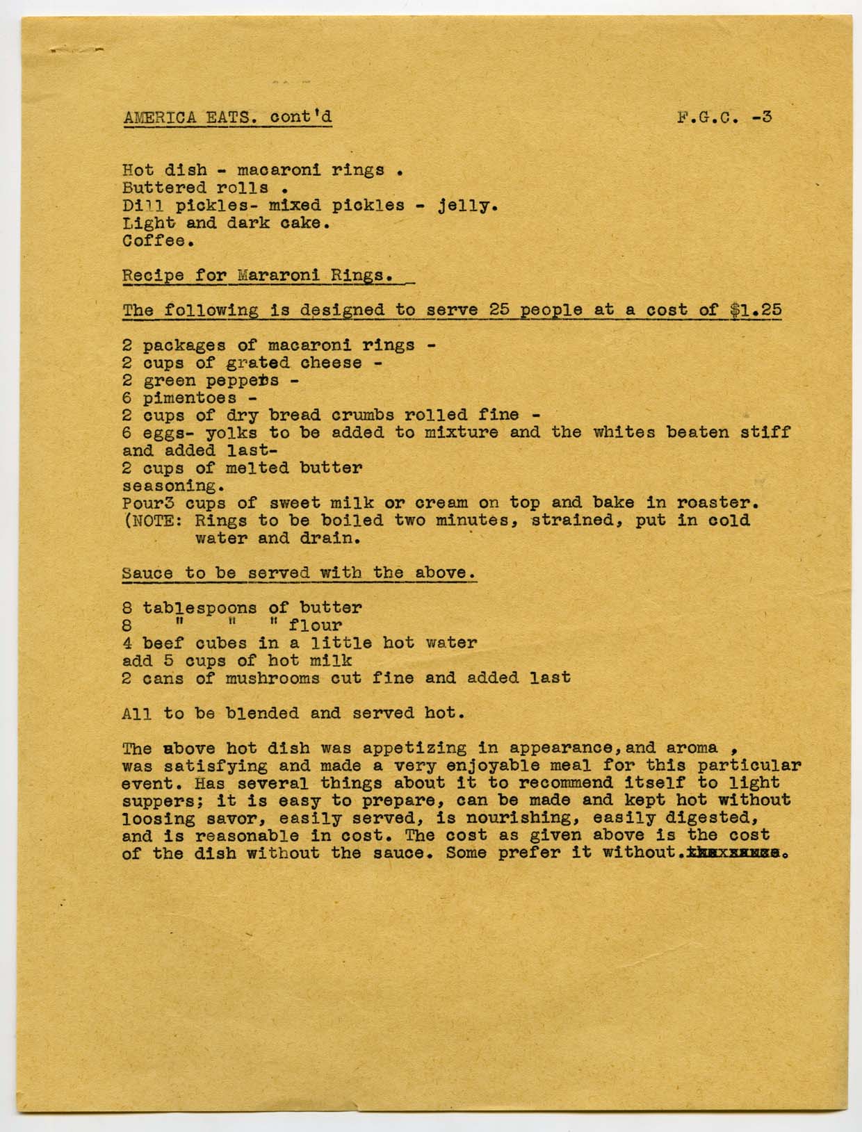 Collection: 30561 - Historical Society. North Dakota Writers' Project. America Eats Files.