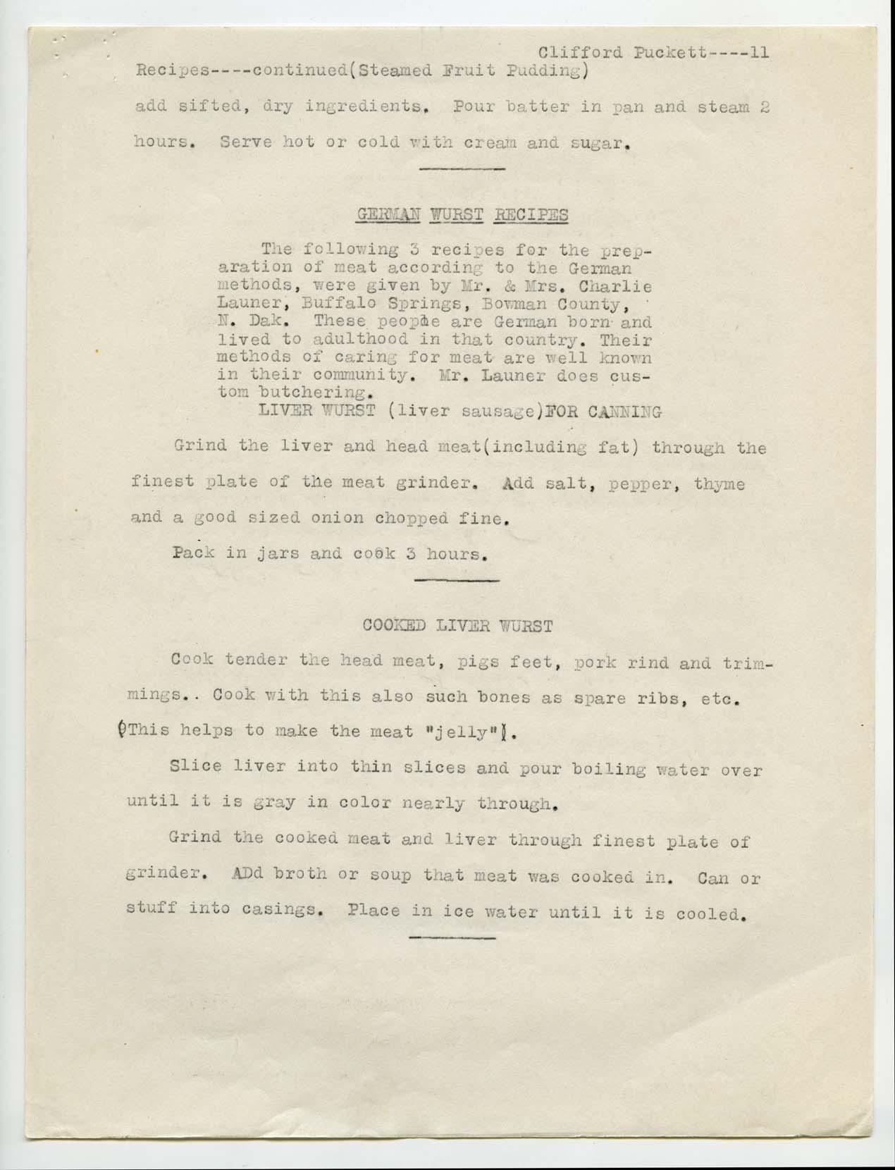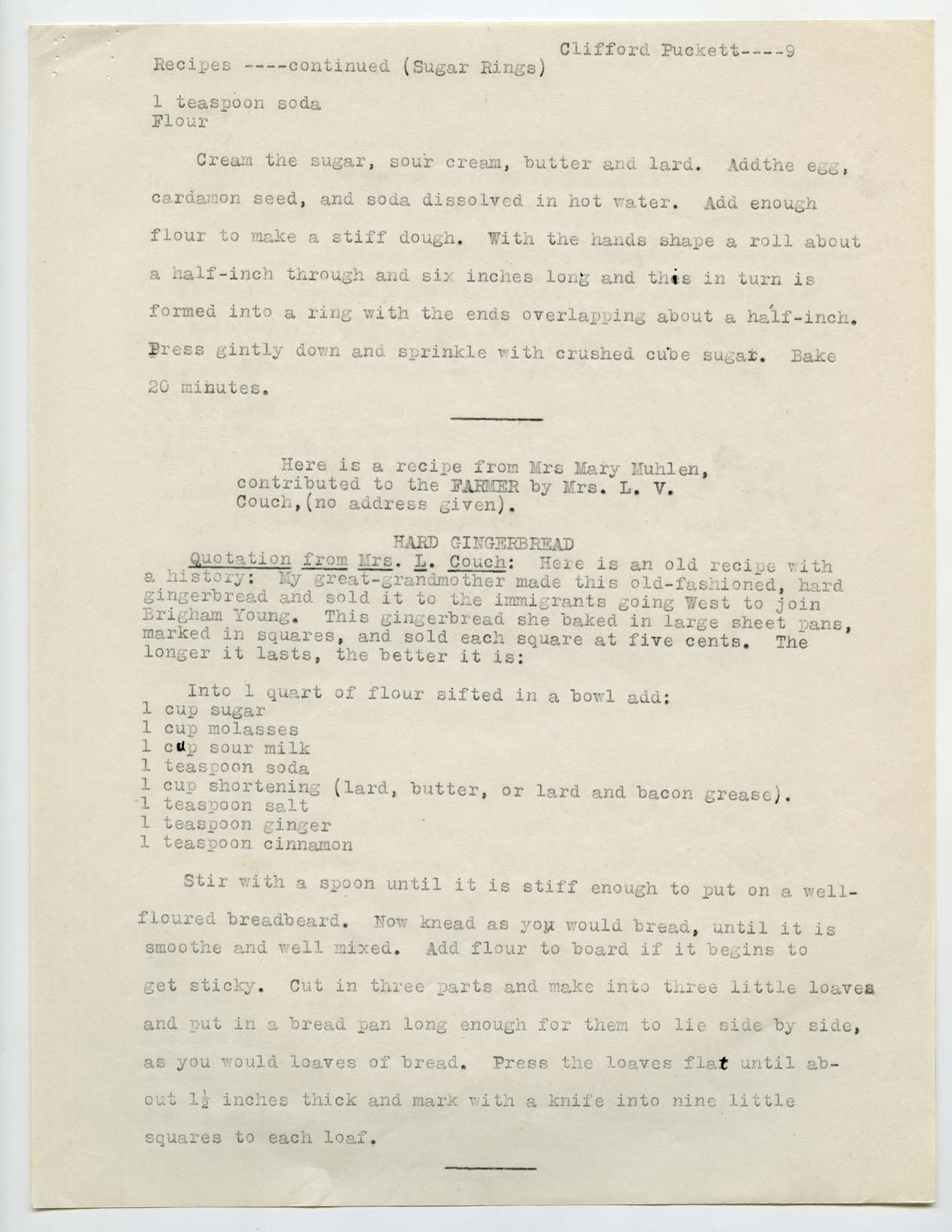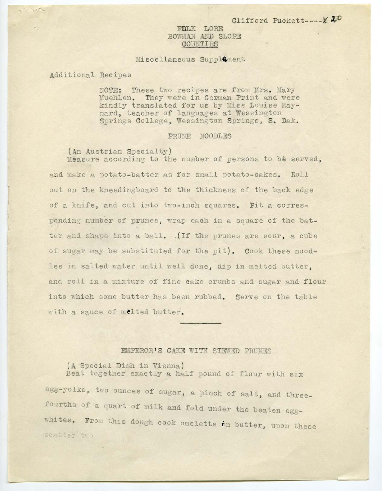 Title: Recipes, Bowman and Slope Counties, North Dakota, by Clifford Puckett