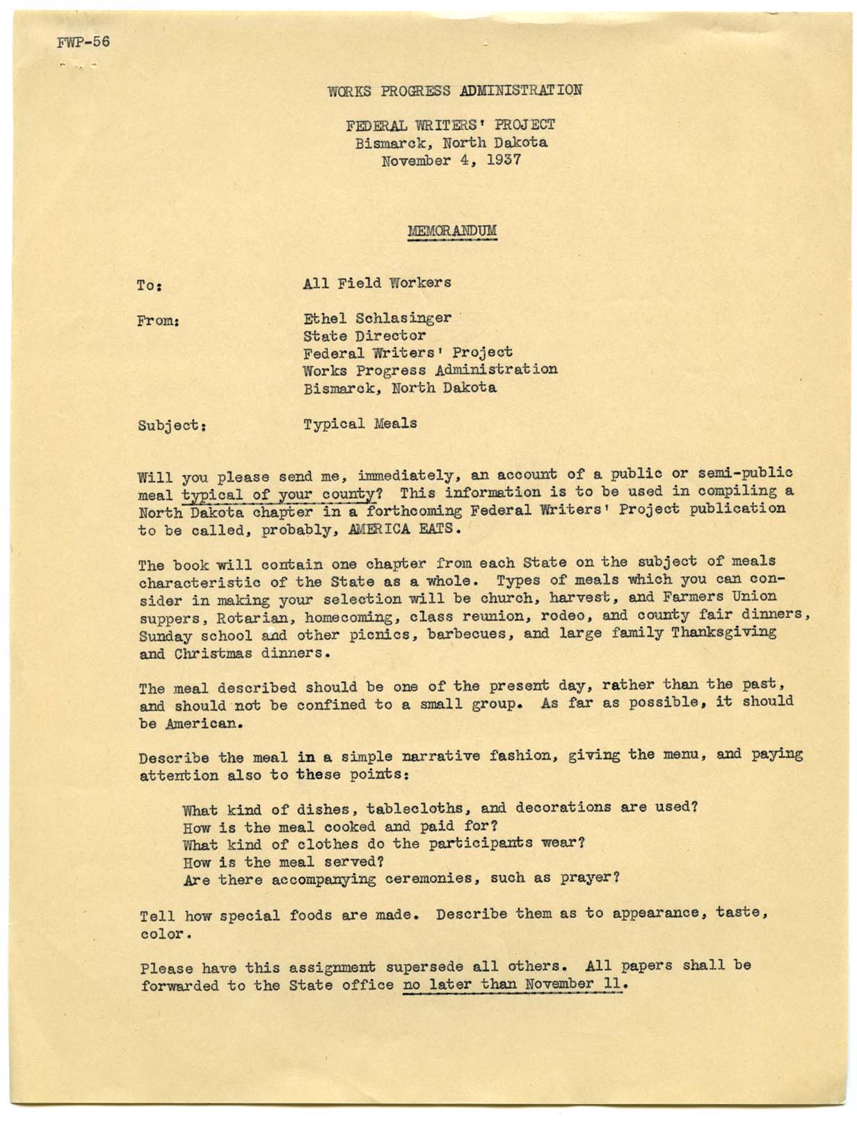 Title: Final draft of "America Eats," by the Staff of the North Dakota Writers' Project