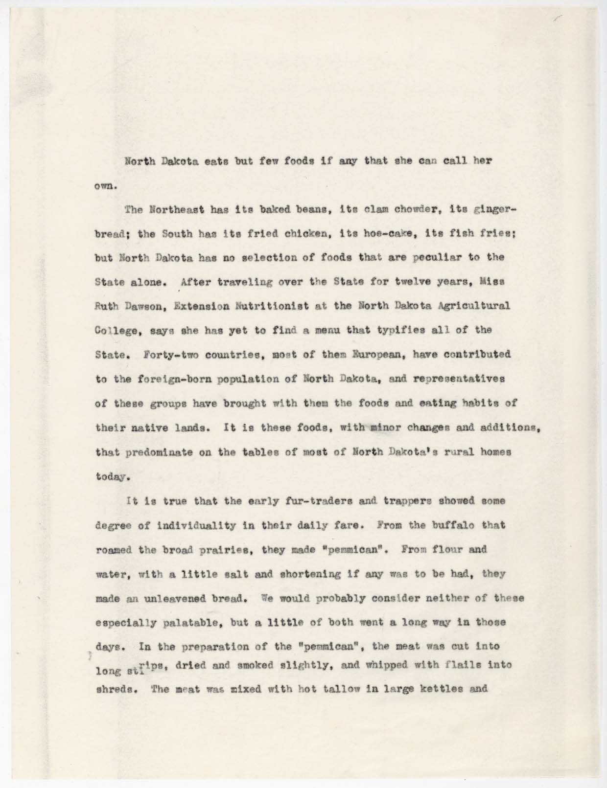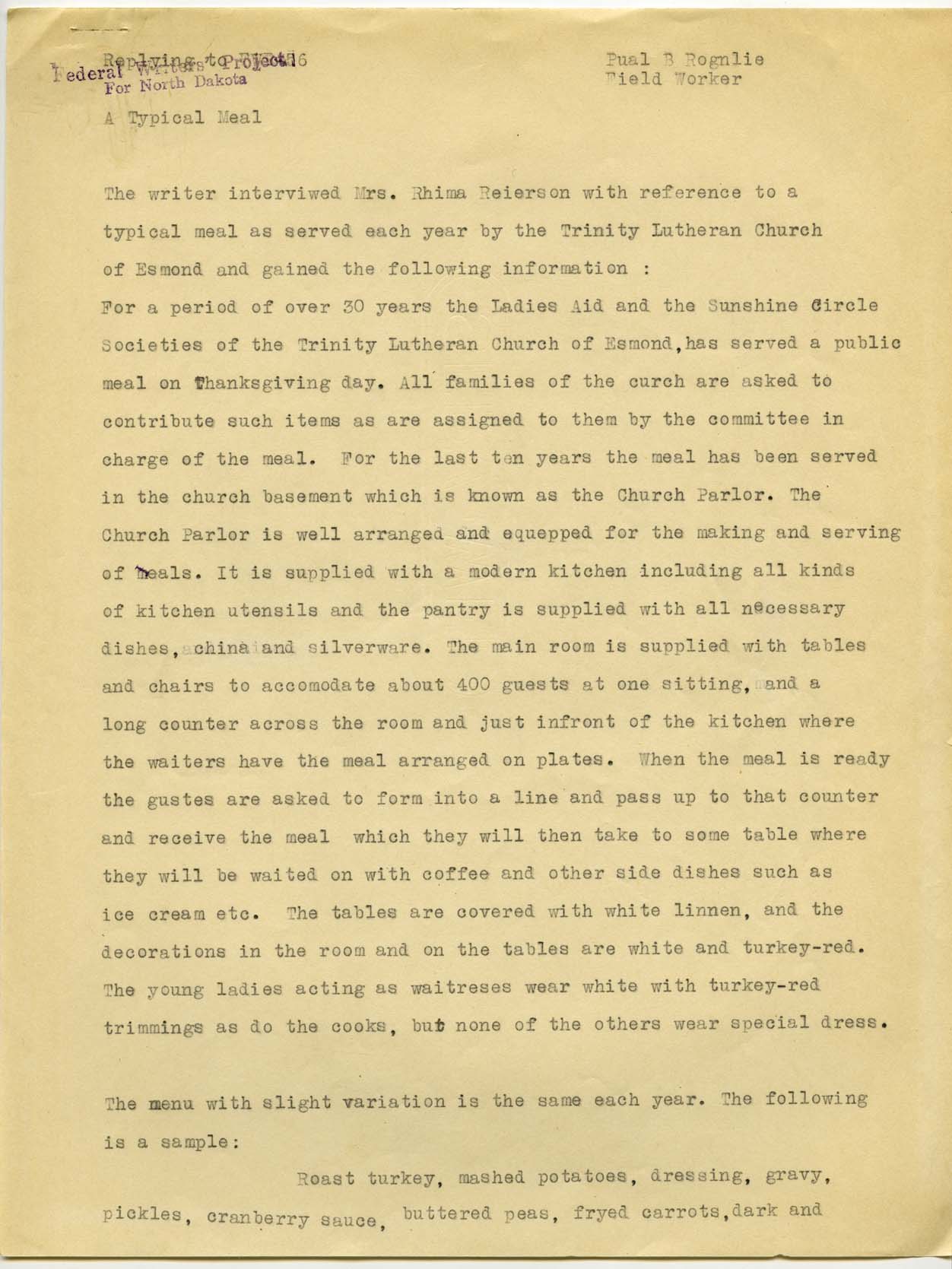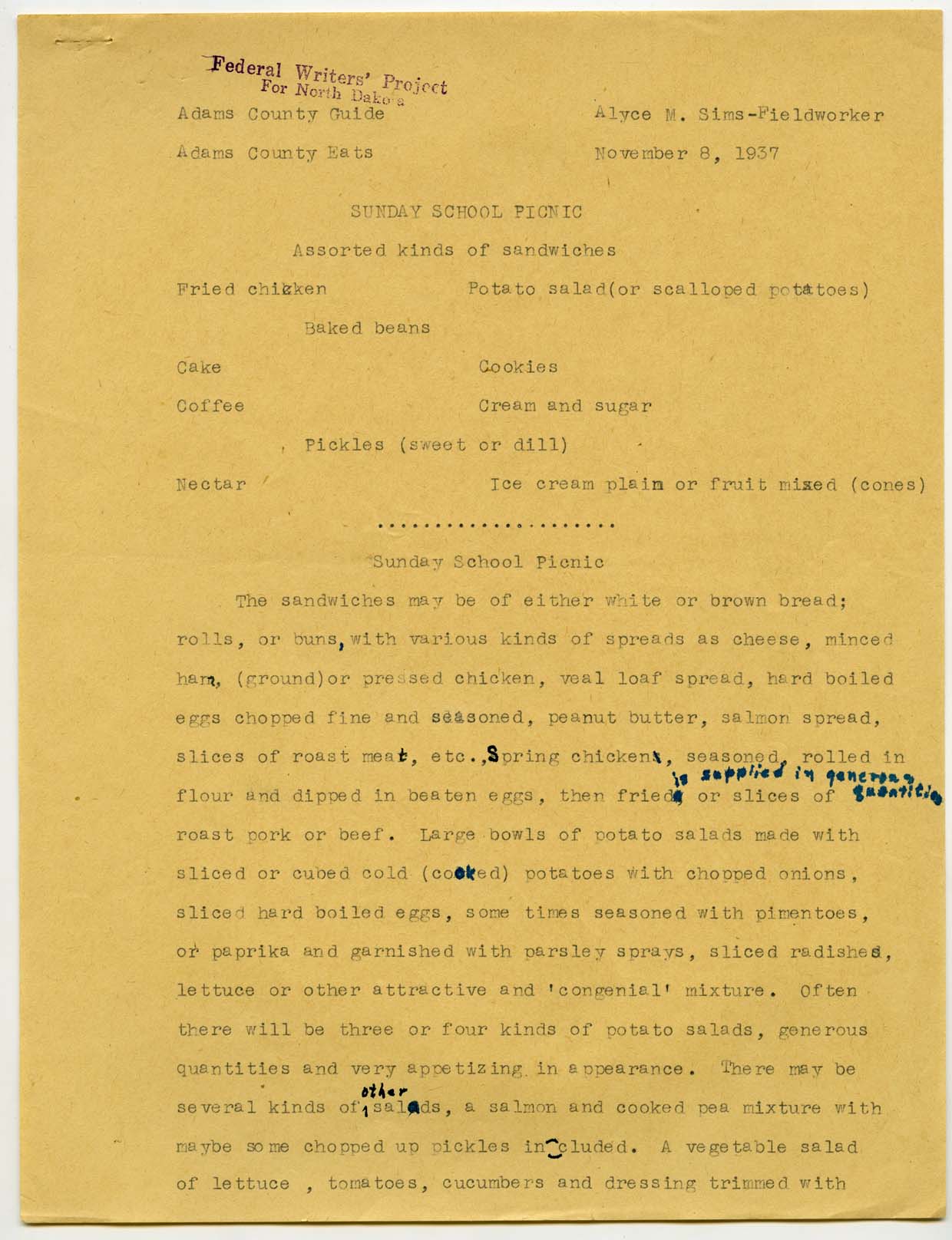 Collection: 30561 - Historical Society. North Dakota Writers' Project. America Eats Files.