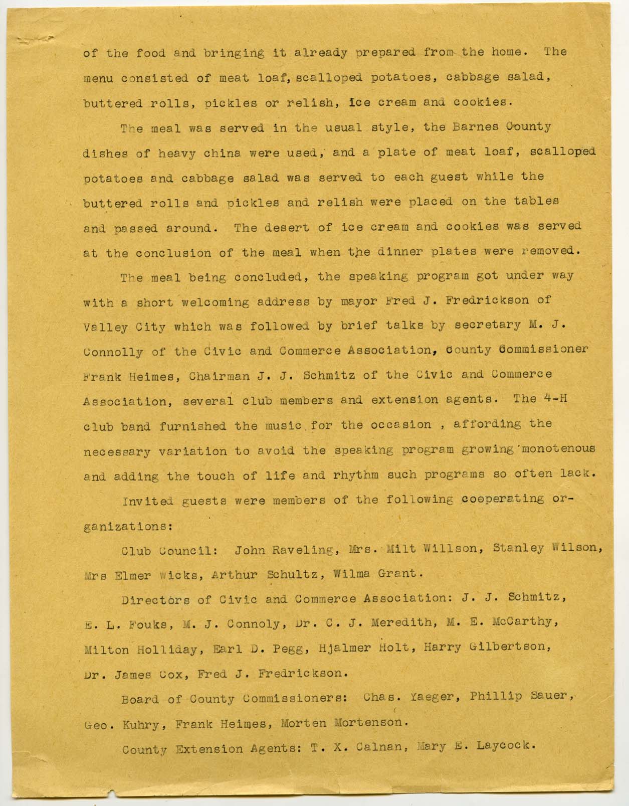 Title: Draft essay about the sixth annual 4-H Club Achievement Banquet, Barnes County, North Dakota, by Fred J. Reher