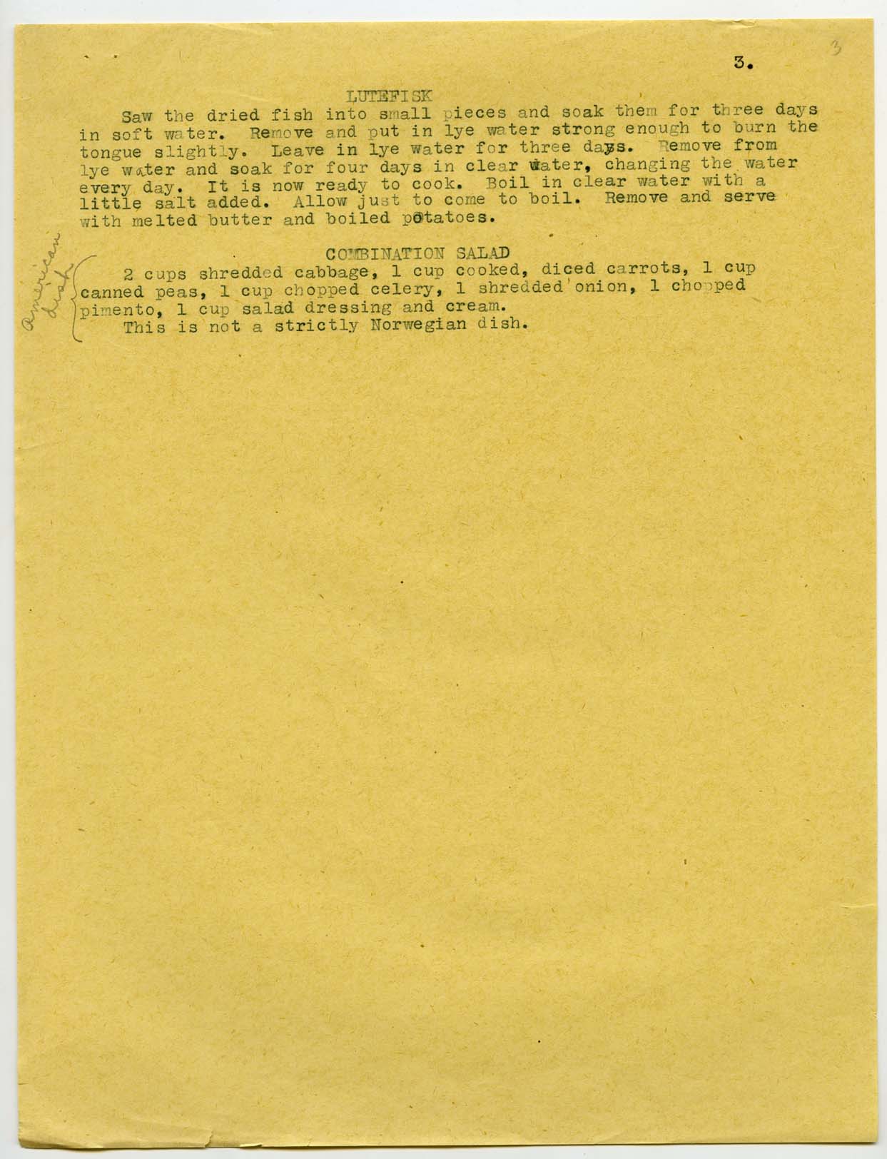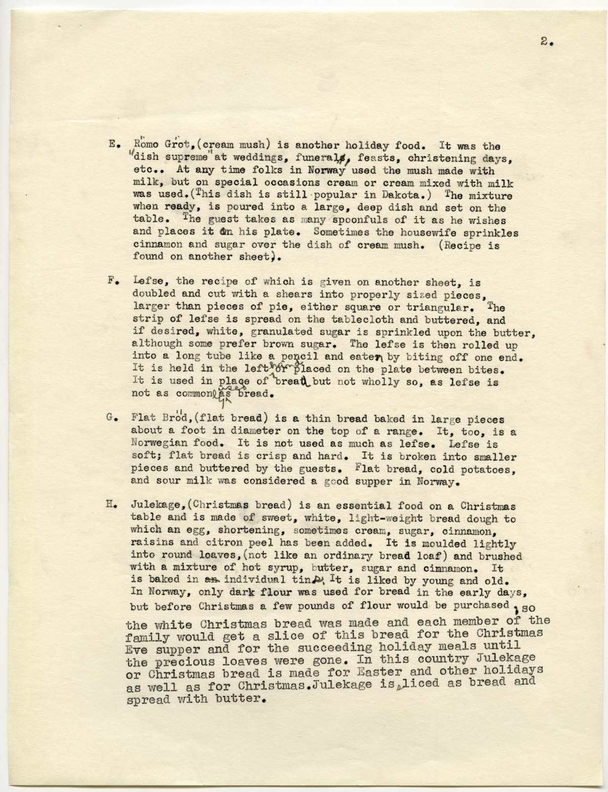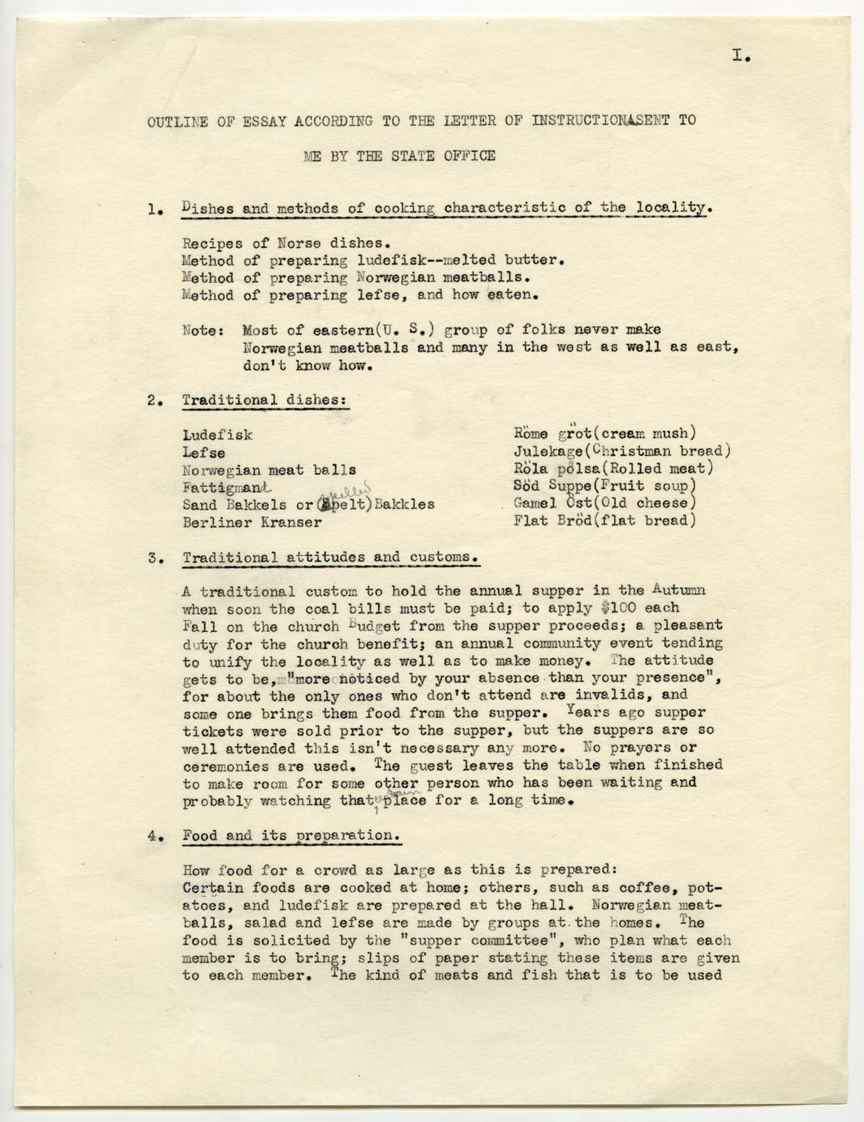 Title: Notes for an essay about Norwegian dishes in Cass County by Claire Jackson