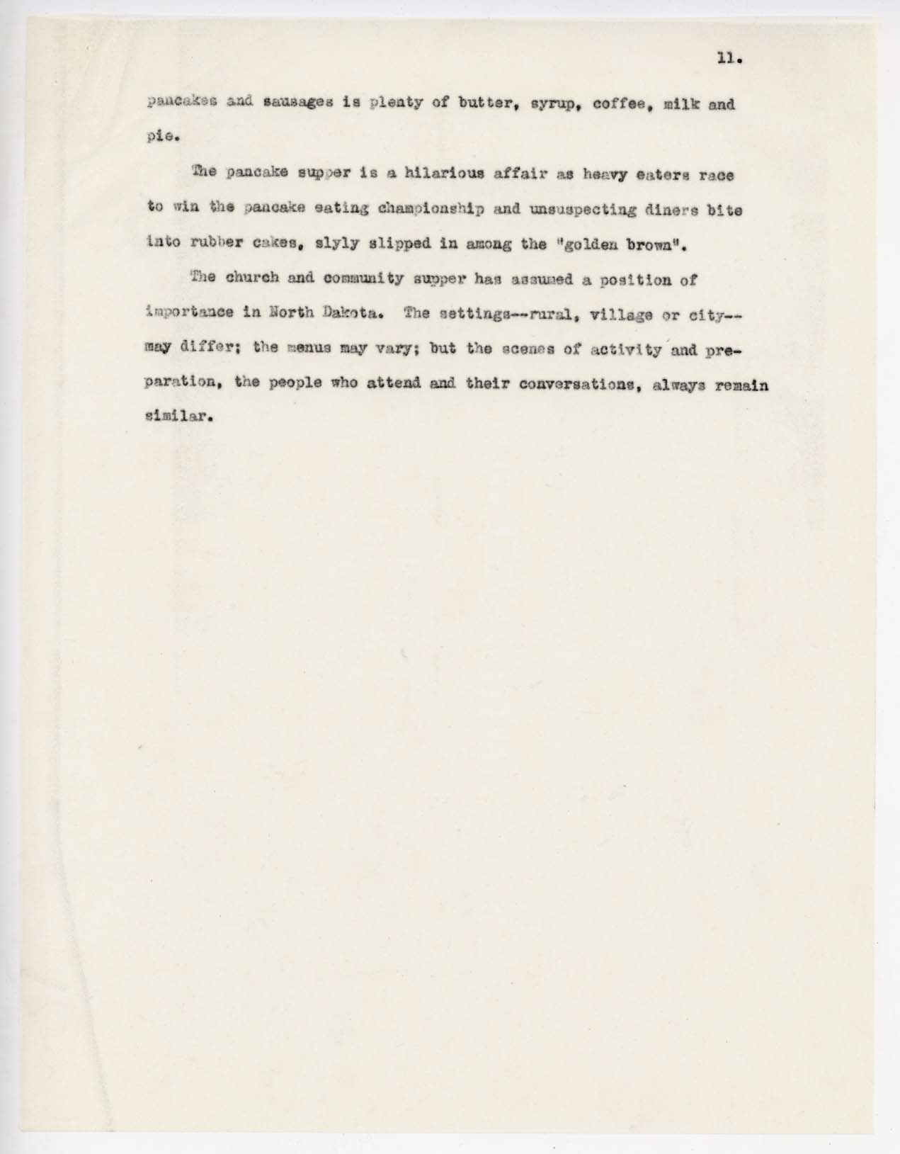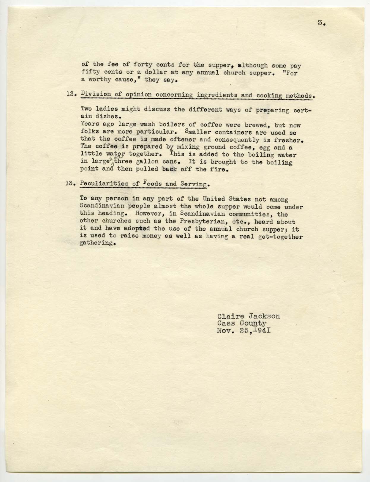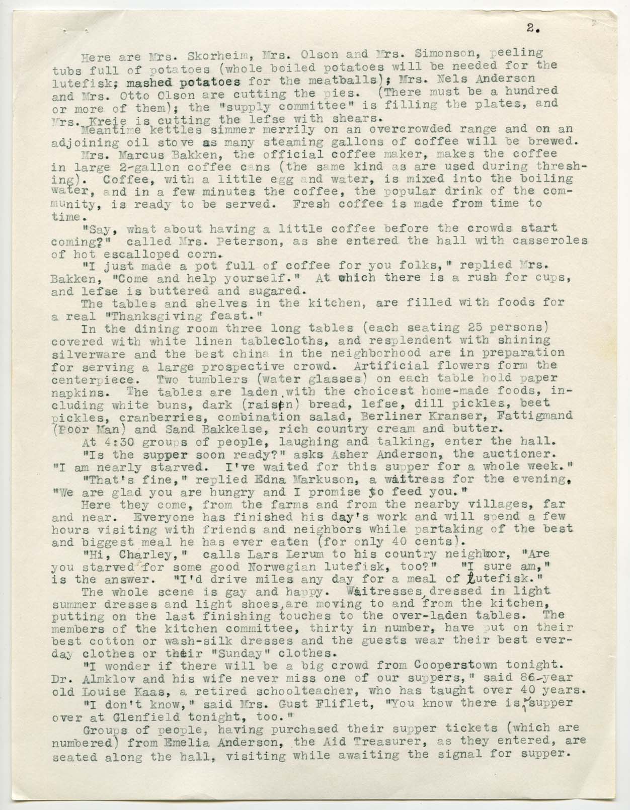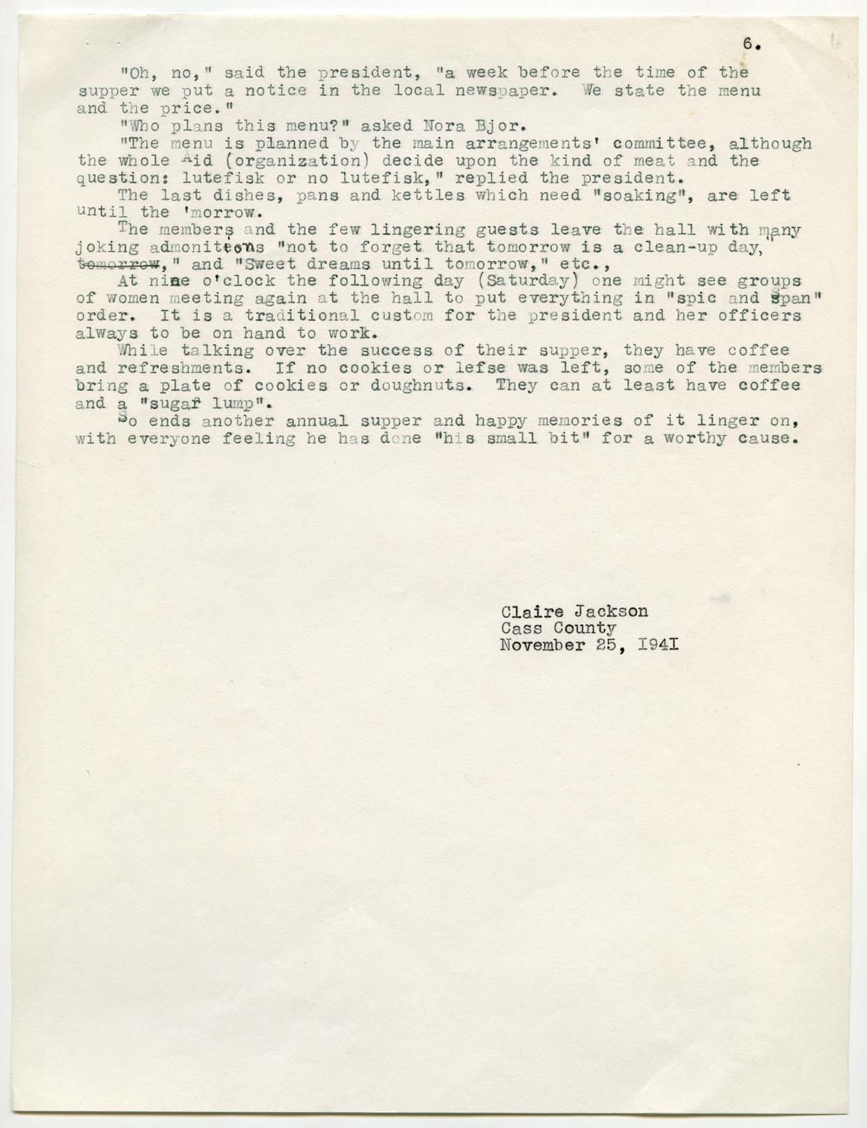 Title: Draft essay about an annual church supper in Cass County, North Dakota, by Claire Jackson