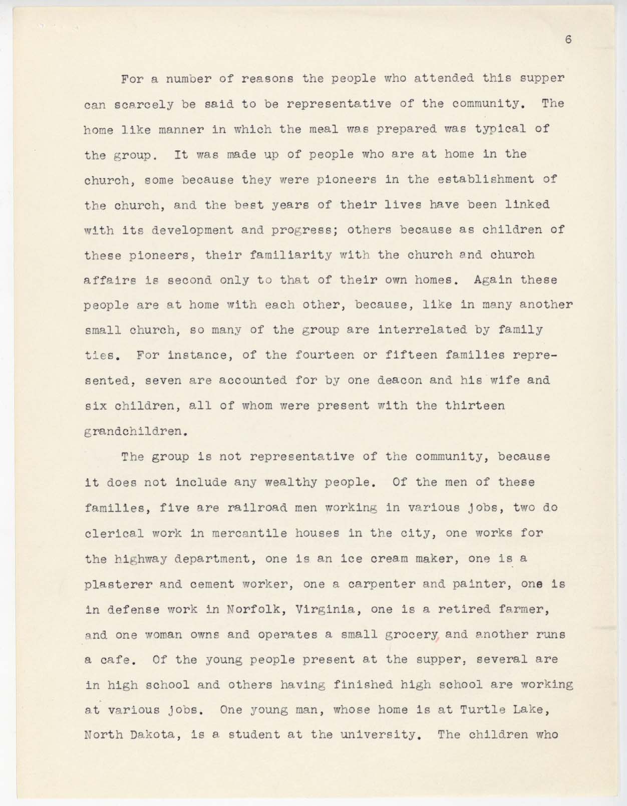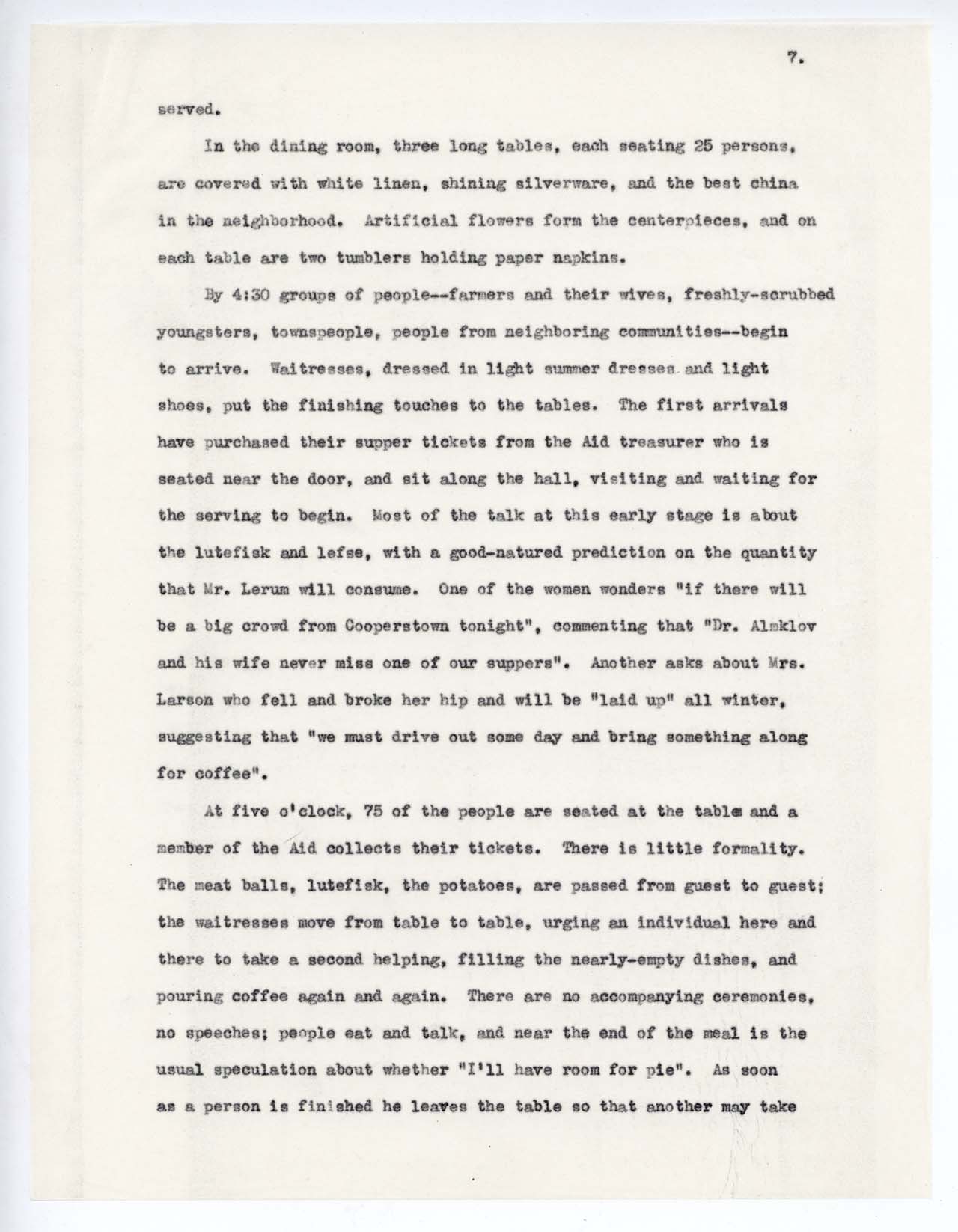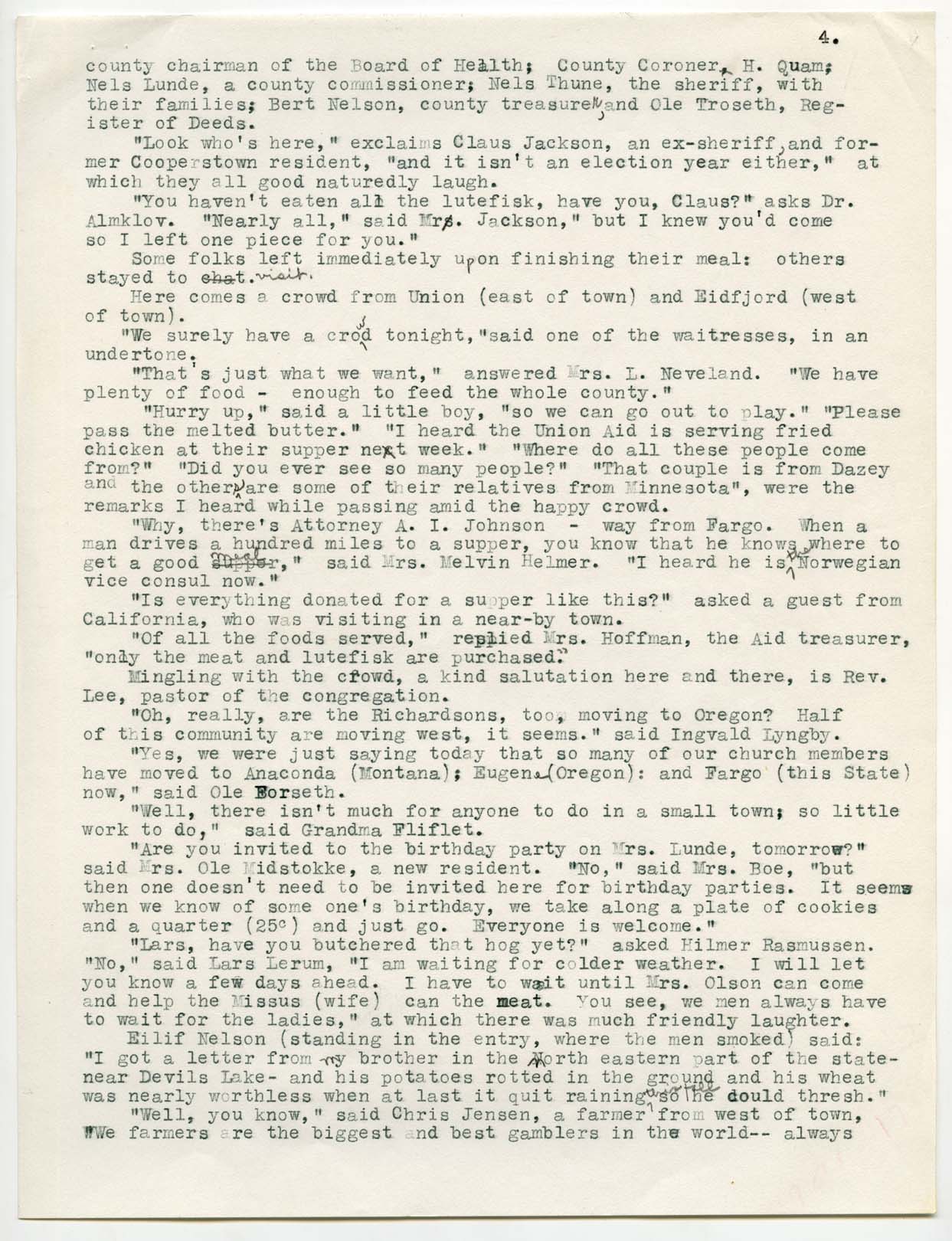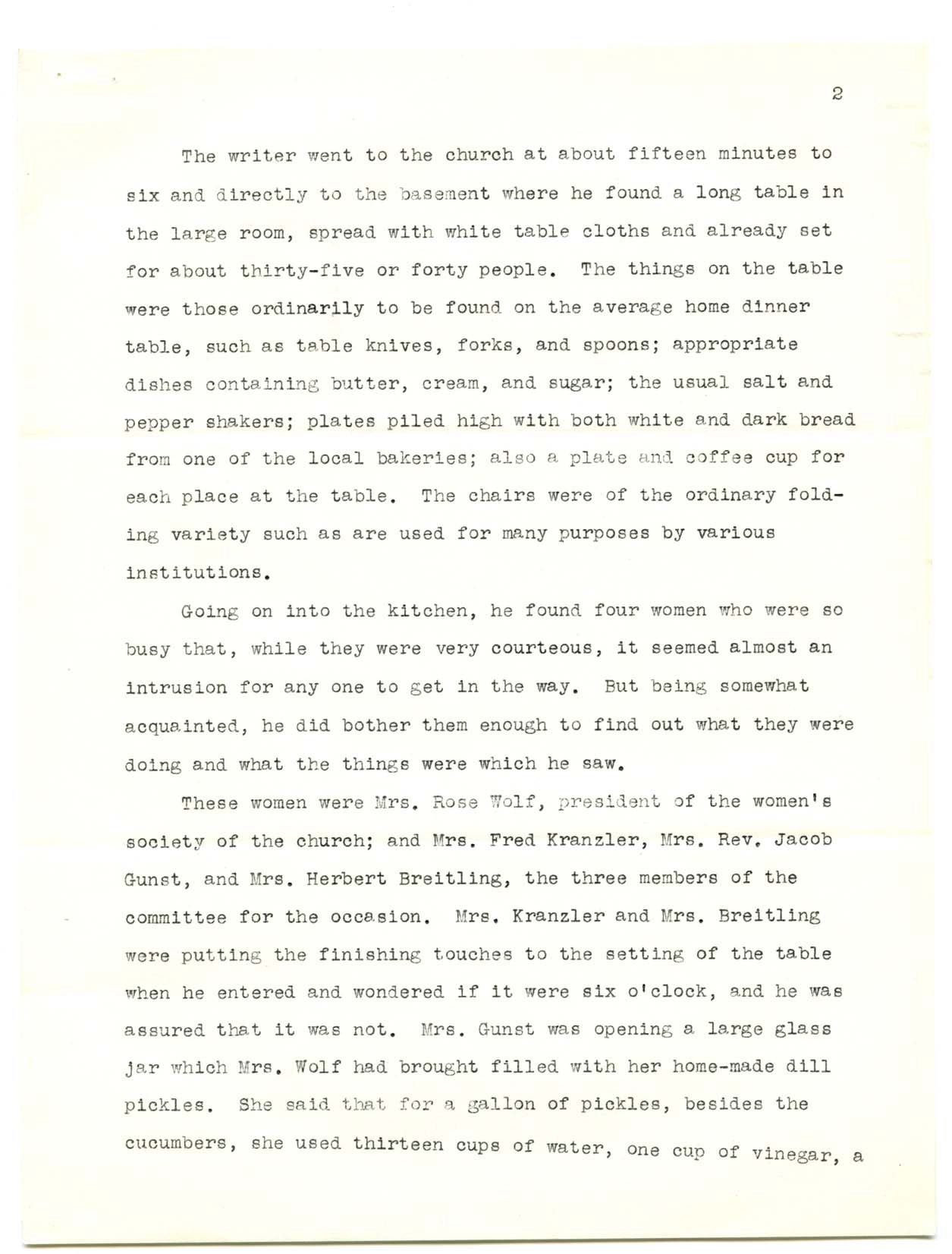 Title: Draft essay about an annual church supper in Cass County, North Dakota, by Claire Jackson