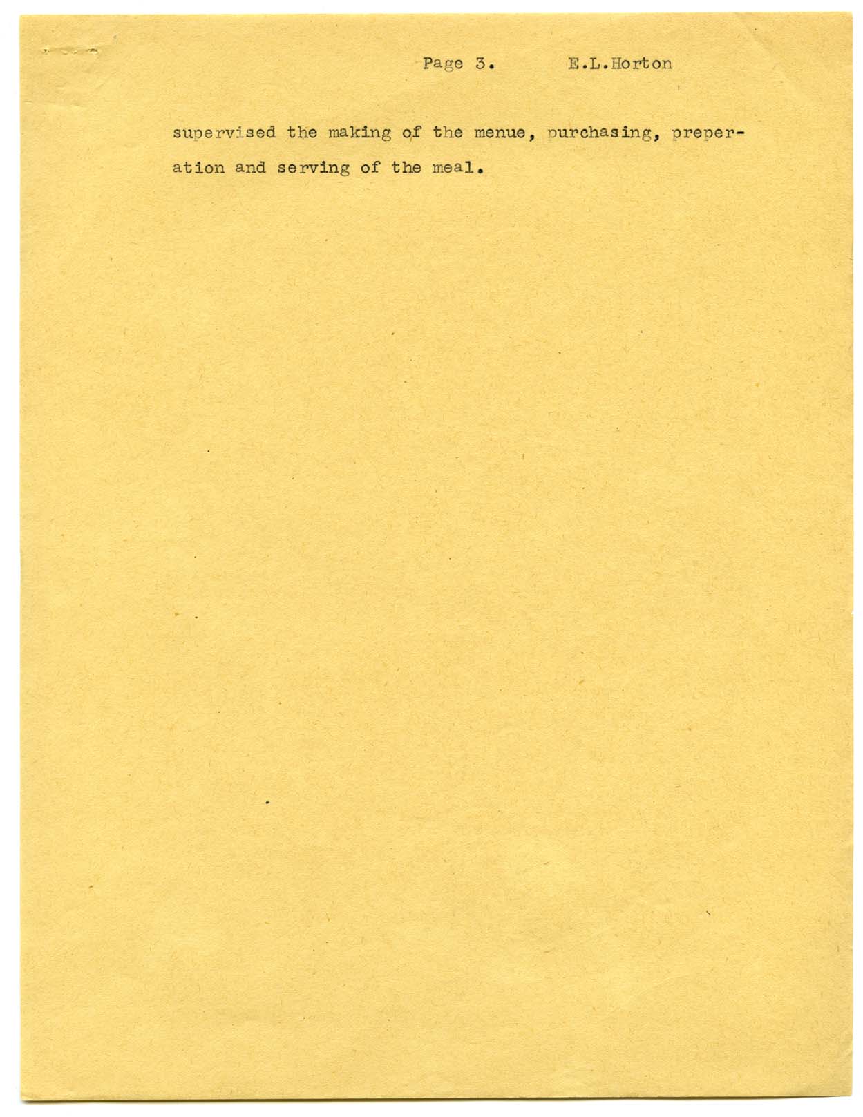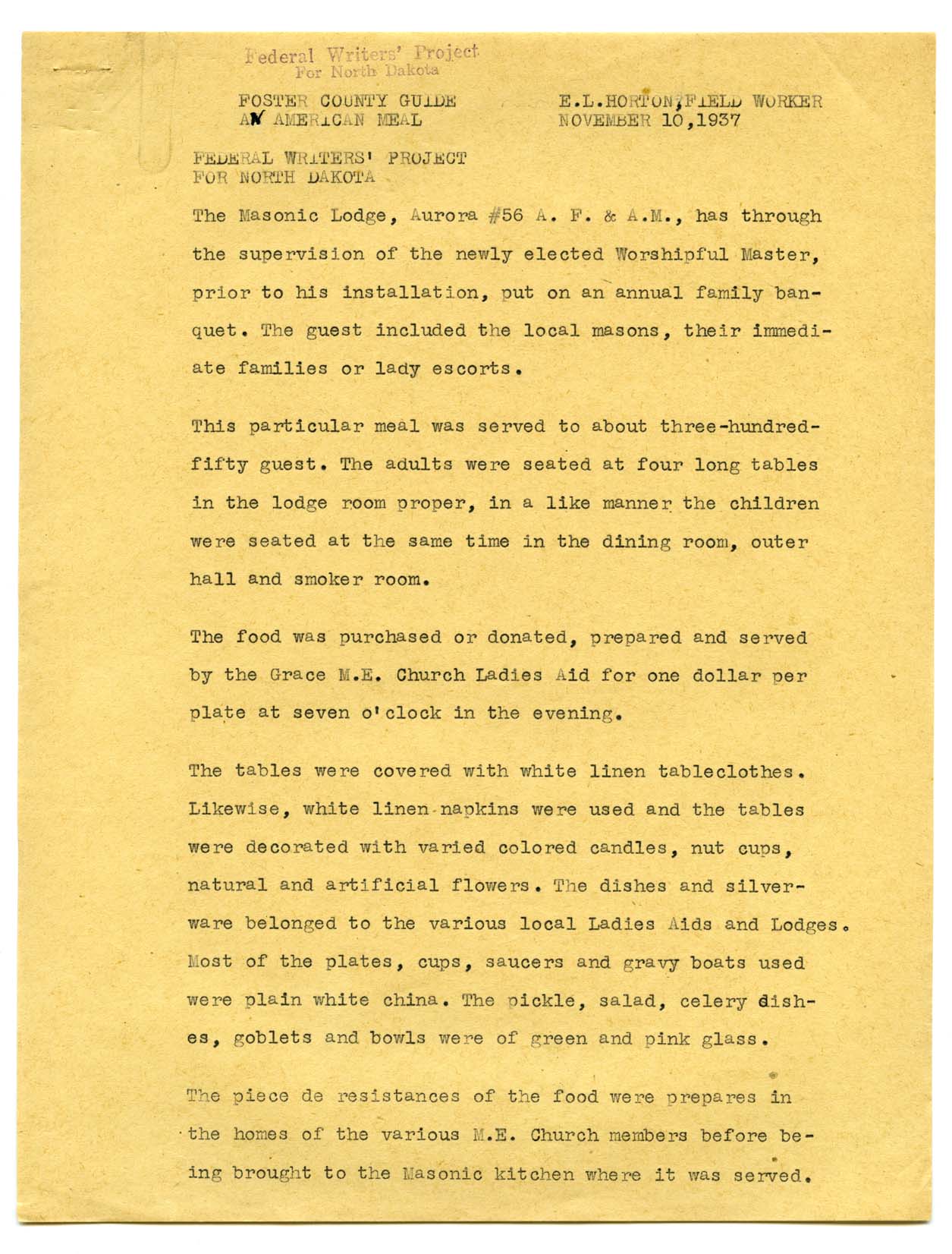 Title: Draft essay about a Foster County, North Dakota, American Meal by E. L. Horton